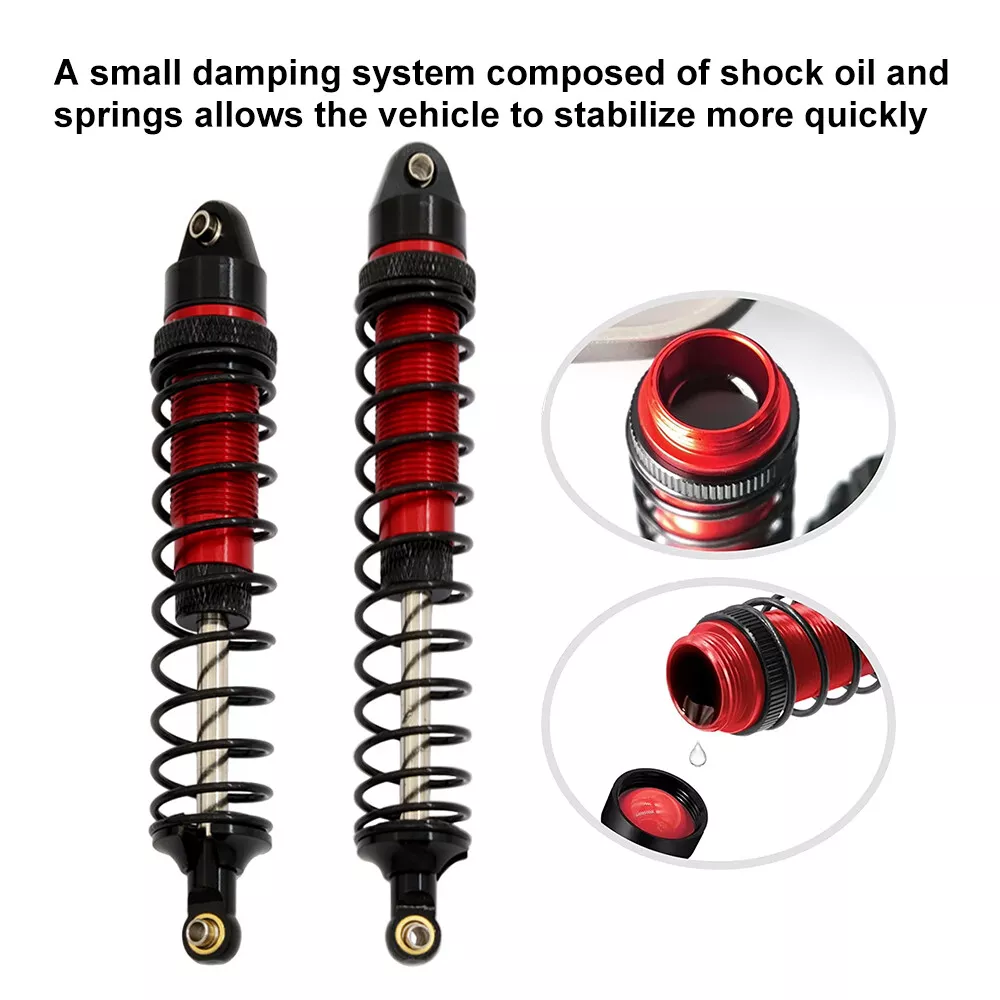 9IMOD 4PCS Shock Absorber 119/134mm Front&Rear Metal Hydraulic Shock Absorber RC Car Upgrade Parts for Traxxas Slash 4x4 1:10 ARRMA 727 Mountain Mouse Features: 1. Made of quality aluminum alloy and plastic material, wear resistant, proof, high strength, and long service life. 2. Easy to install and remove, direct replacement of old or damaged one, quick height adjustment and ability to adjust preload. 3. Excellent shock absorption provides a balanced driving experience and reduces vibrations due to rough road conditions. 4. Independent spring design, which can ensure the shock absorption effect and improve the stability of the remote control car. 5. A high quality upgrade part to improve the appearance of your model car. 6. suit for Traxxas Slash4x4 Dead Mouse Short Card Metal Parts Shocks 727 Mountain Mouse,1:10 ARRMA Shengtang Boulder Granite Voltax Little Typhoon. Description: The package contains 4pcs hydraulic shock absorber. Reasonable design makes it easy to install and disassemble,This RC Shock absorber are the best spare choice for your rc cars. it is a replacement parts for damaged or old. Specifications: Name: Shock Absorber Material: Aluminum Optional Color: Red/Blue Quantity: 4Pcs Front Total Length: 119mm Rear Total Length: 134mm Front Hole Center to Hole Center: 109mm Rear Hole Center to Hole Center: 124mm Hole diameter: M3 Package contents: 2 *Front Shock Absorber 2 *Rear Shock Absorber Note: Only the above package content, other products are not included. 1.Due to the difference between different monitors,the picture may not reflect the actual color of the item. We guarantee the style is the same as shown in the pictures. 2.Due to the manual measurement and different measurement methods, please allow 1-3mm deviation.Thanks! Before purchase: 1.All the goods are ready stock, we will arrange the shipment at once if we receive the order. 2.Please read the item description, if you have any question, do not hesitate to contact us. 3.No warranty,if you receive a defect item,please contact us at once with item picture. 4.Use the vouchers for more saving. After purchase: 1.If you are satisfied,please express your use feeling. 2.Please contact us before you are going to give us bad review. We are helpful and will solve the problems. If you receive a defect item,please contact us at once with item picture or video.