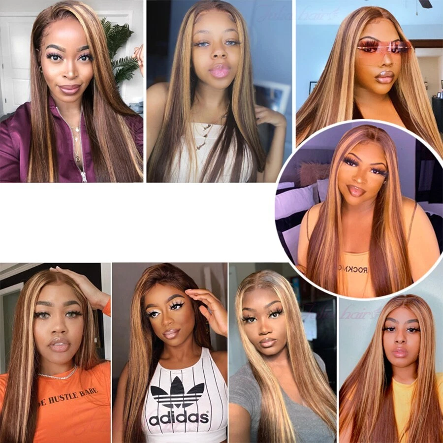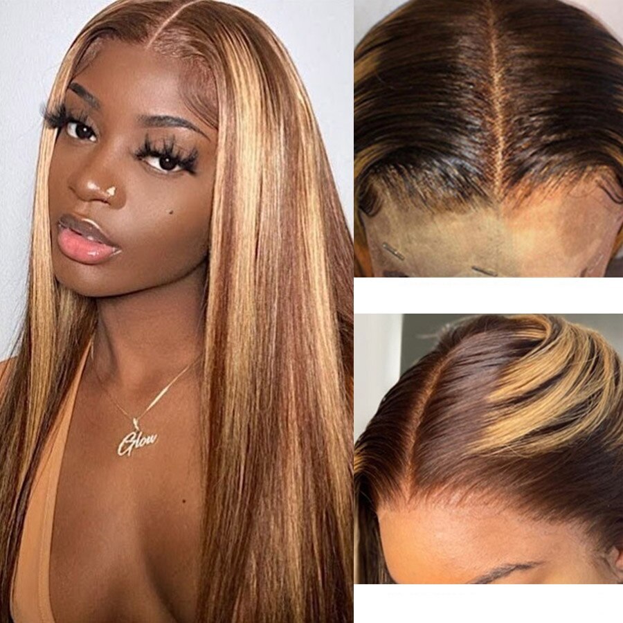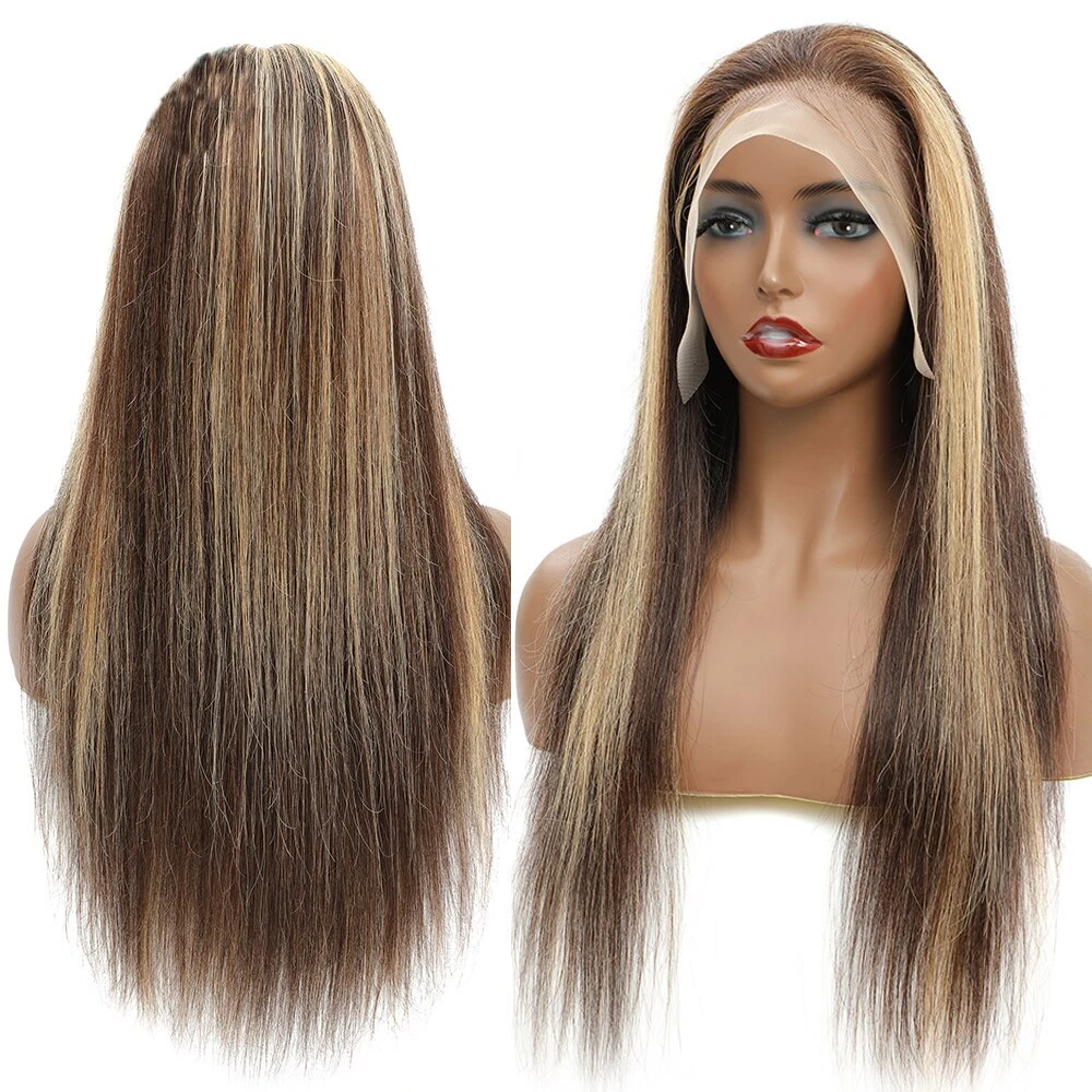 4X4 13X4 Lace Frontal Human Hair Wigs 180% Density Bone Straight Ombre Highlight Colored HD Lace Front Wig 32 Inch Lace Closure