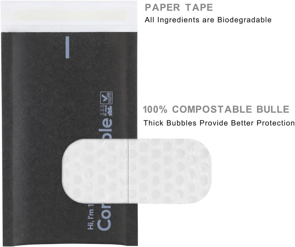 Store New Arrivals Add to Favorite View Feedback Contact 4X8 100% Biodegradable Bubble Mailers,25 Count Kraft Black #000 Compostable Padded Packaging Wrap Envelopes Pouches Eco Friendly Self Seal Bags Description Size Name 4x8'' 25PCS Number of Items 25 Closure Type Self-Seal Color Black Material Paper, Plastic Material Type Paper, Plastic Shape Rectangular Apparel Closure Type Self-Seal Style Name Bubble Additional Features Waterproof, Padded, Self Adhesive Item Dimensions L x W 9"L x 6"W Size 4x8'' 25PCS 100% Biodegradable: our bubble cushioning wrap is made of PBAT and modified corn starch. The envelope is made of kraft. These poly bubble mailers are certified by BPI and OK compost, and meet the standards of ASTM 6400 and EN13432. They are non-toxic , BPA-free and generate less CO2 than traditional plastic. Improve Your Corporate Image: your customers will be surprised and relieved to open a bubble mailer made of plant-based eco materials. It will speak volumes about your sense of social responsibility and the high quality of your brand, and help you build a lasting impression with your customers. Each bubble envelope contains a four-season self-sealing adhesive strip. The strong stickiness prevents your items from being tampered with during transportation, even in extreme hot or cold weather. Please note: store these compostable padded shipping envelopes in a cool, dry location and avoid direct sunlight. The shelf life is 12 months. More Sturdy than Traditional Mailers: they are tear-resistant, puncture-resistant, and waterproof. Due to the strong self-adhesive glue, the recycled mailer cannot be opened once sealed before the whole packaging bag is torn up. You can count on our biodegradable padded poly mailers to keep your packages safe until they reach their destination. Suitable for Various Purposes: these padded packaging envelopes have a multi-purpose use, from offices to homes, shops, and schools. The anti-water paper surface easily accepts ink, stamps, and labels. ABOUT US We offer the best prices around on high quality products. Our E-store includes media such as books, movies, music and games while offering electronics, toys, sporting apparel, clothing, tools, general home, garden items and more. SHIPPING We are always working hard to ensure your package arrives as soon as possible. Please understand that some factors like weather, high postal traffic, and the performance of shipping companies are outside of our control. We offer free shipping to the lower 48 states and ship within 2 business days of payment, usually sooner. We do not accept P.O. Boxes. Please provide a physical address. For shipping outside of the continental USA, we only use eBay's Global Shipping Program.The item is shipped to KY and then sent to the rest of the world. International customers are responsible for all duties and taxes. Continue to check out in order to calculate costs for shipping the item to your country. Messages regarding eBay's Global Shipping Program MUST be directed at eBay EXCLUSIVELY. RETURNS We offer a 30-Day Return Policy on items which you are not completely satisfied with. You have the option for a full-refund or an exchange of the item. No returns are available on items shipped outside of the USA. PAYMENT We accept PayPal. CONTACT US This page content is yet to come Please ad us to your favorite seller and visit again later Thank You CUSTOMER SATISFACTION We try our very best to make sure every customer is completely satisfied. If there's a problem, message us! We're happy to help. WE ACCEPT Copyright © 2021 AutoDS. | All Rights Reserved
