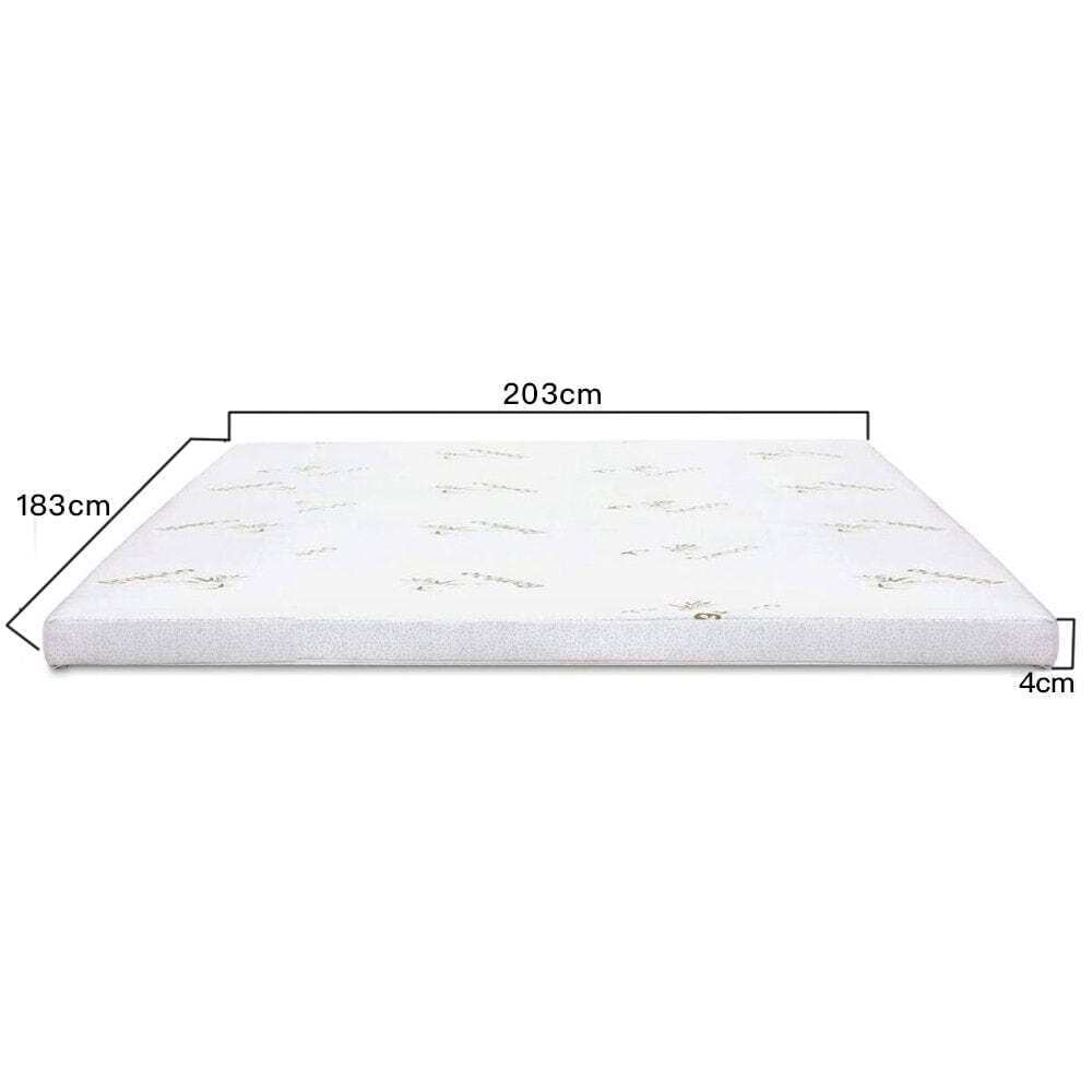 NNEDSZ 4cm Memory Foam Mattress Topper with Bamboo Cover - King Stop waking up with aches and pains. Our bamboo-infused memory foam mattress topper adds comfort without unnecessary bulk, letting you wake up more refreshed every morning. Create a heavenly sleeping surface with 4cm Breathable Memory Foam Mattress Topper. This high-density mattress topper is expertly crafted and designed for those who enjoy a soft, cradling feel. Bamboo cover offers optimal airflow and breathability, creating a microclimate that naturally regulates body temperature for restful sleep. Comfort: Memory foam has a unique ability to model to the shape of the body, providing pressure relief and support. This makes it ideal for people with aches and pains, as well as those who just want a more comfortable night's sleep. Durability: Memory foam is known for its durability and long lifespan. A quality memory foam topper can last for years, providing consistent comfort and support throughout its lifespan. Motion Isolation: Memory foam does a good job at absorbing motion, which means that if one partner moves, it is less likely to disturb the other. This is ideal for couples who have trouble sleeping because of their partner's movements. Easy to Clean: Most memory foam toppers are covered with a removable and washable cover, making it easy to keep them clean and fresh. Improved Sleep Quality: By providing pressure relief, support, and comfort, memory foam toppers can help improve sleep quality and reduce the likelihood of waking up with aches and pains. Versatility: Memory foam toppers can be used on any type of mattress to improve comfort and support, making them a versatile addition to any bedroom. Features: 100% Visco elastic memory foam 60 kg/m high-density foam 4cm thickness - perfect for its density Contours to the shape of your body Removable jacquard knitting fabric cover with zipper Allows even weight distribution Size L 203 x W 183 x H 4 cm Package Includes: 4cm Memory Foam Mattress Topper with Bamboo Cover King Size Specification: Fill Material: Memory Foam Cover Material: Bamboo Hypo-Allergenic: Yes Care Instruction: Remove foam before wash routine; machine washable up to 40 degree; do not bleach; do not iron; do not dry clean; tumble dry on low heat Tumble Dryable: Yes Machine Washable: Yes Dry Cleanable: No Enclosure Type: Zippered Product Warranty: 3 Years NNEDSZ 4cm Memory Foam Mattress Topper with Bamboo Cover - King Stop waking up with aches and pains. Our bamboo-infuséd memory foam mattress topper adds comfort without unnecessary bulk, letting you wake up more refreshed every morning. Create a heavenly sleeping surface with 4cm Breathable Memory Foam Mattress Topper. This high-density mattress topper is expertly crafted and designed for those who enjoy a soft, cradling feel. Bamboo cover offers optimal airflow and breathability, creating a microclimate that naturally regulates body temperature for restful sleep. Comfort : Memory foam has a unique ability to model to the shape of the body, providing pressure relief and support. This makes it ideal for people with aches and pains, as well as those who just want a more comfortable night's sleep. Durability : Memory foam is known for its durability and long lifespan. A quality memory foam topper can last for years, providing consistent comfort and support throughout its lifespan. Motion Isolation : Memory foam does a good job at absorbing motion, which means that if one partner moves, it is less likely to disturb the other. This is ideal for couples who have trouble sleeping because of their partner's movements. Easy to Clean : Most memory foam toppers are covered with a removable and washable cover, making it easy to keep them clean and fresh. Improved Sleep Quality : By providing pressure relief, support, and comfort, memory foam toppers can help improve sleep quality and reduce the likelihood of waking up with aches and pains. Versatility : Memory foam toppers can be uséd on any type of mattress to improve comfort and support, making them a versatile addition to any bedroom. Features: 100% Visco elastic memory foam 60 kg/m high-density foam 4cm thickness - perfect for its density Contours to the shape of your body Removable jacquard knitting fabric cover with zipper Allows even weight distribution Size L 203 x W 183 x H 4 cm Package Includes: 4cm Memory Foam Mattress Topper with Bamboo Cover King Size Specification: Fill Material: Memory Foam Cover Material: Bamboo Hypo-Allergenic: Yes Care Instruction: Remove foam before wash routine; machine washable up to 40 degree; do not bleach; do not iron; do not dry clean; tumble dry on low heat Tumble Dryable: Yes Machine Washable: Yes Dry Cleanable: No Enclosure Type: Zippered Product Warranty: 3 Years × × × × × × Buy now and save! Shipping info Click the Shipping & Payments tab above the listing description for more info Click the Shipping & Payments tab above the listing description for more info! Additional delivery notes PICK UP OPTION Our items are available for pick-up. Pick up procedure is as follows: Purchase the item through eBay Email us to coordinate pickup PAYMENT Immediate payment is required upon selecting "Buy It Now" or upon checking out through the cart. We accept payment via All Major Credit Cards (Visa, Mastercard, AMEX, Discover), Google Pay, PayPal, & Apple Pay (on mobile & eBay App). Thank you for shopping with us on eBay! Additional Information No additional information at this time Ask seller a question You might also like NNEVL Bed Cabinet Smoked Oak 40x40x63 cm Engineered Wood NNEVL Shoe Cabinet Black 102x36x60 cm Engineered Wood NNEVL Dog Bed White 61.5x49x9 cm Solid Wood Pine NNEVL Wall Mirror Black 100x60 cm Metal Contact To contact our Customer Service Team, simply click the button here and our Customer Service team will be happy to assist. Ask seller a question © NNE Furniture Shipping & Payments Click the Shipping & Payments tab above the listing description for more