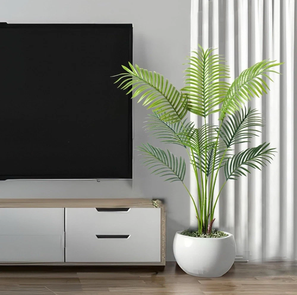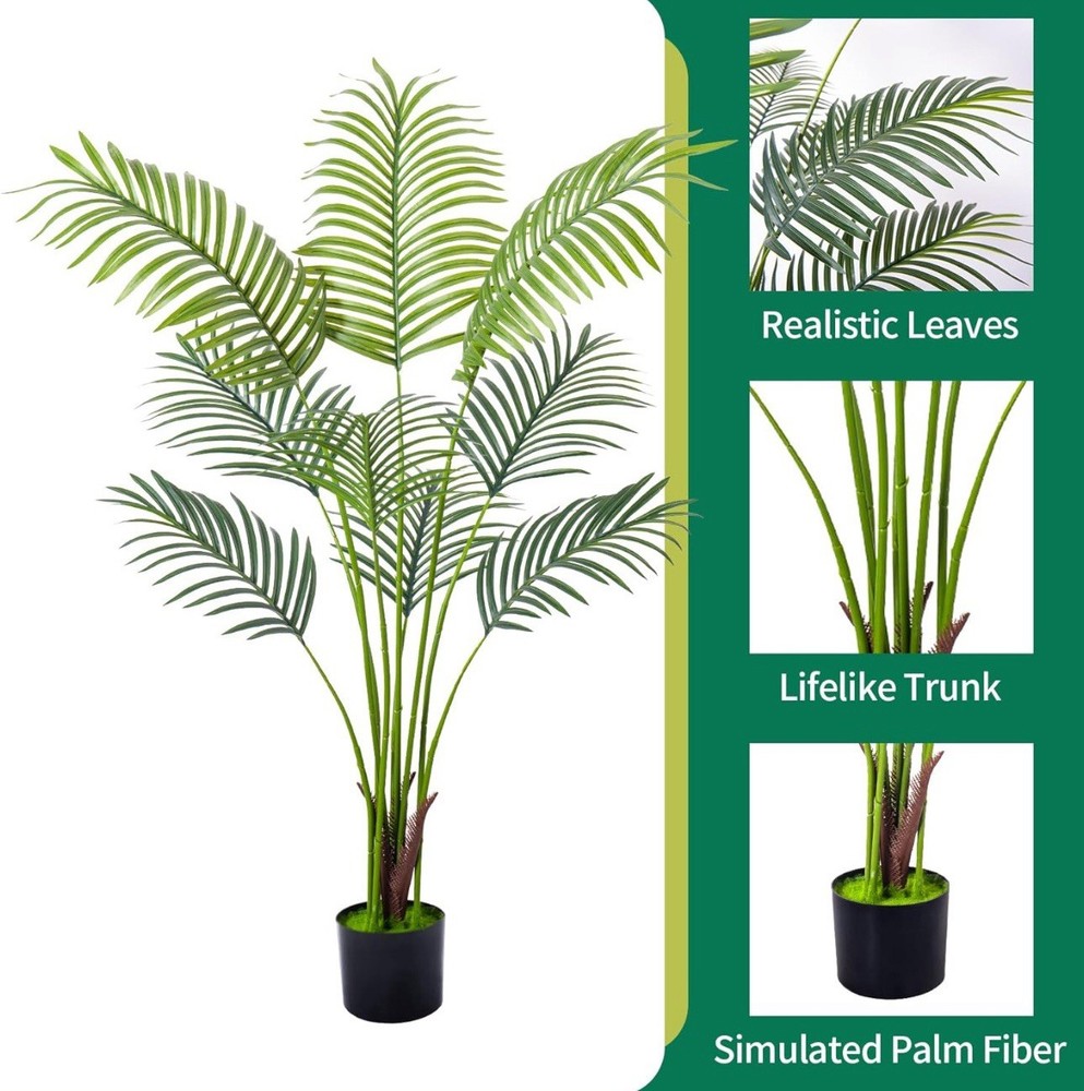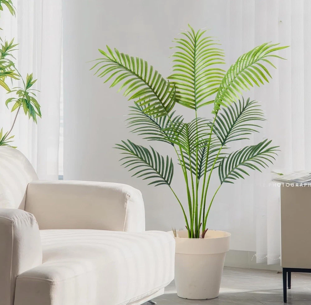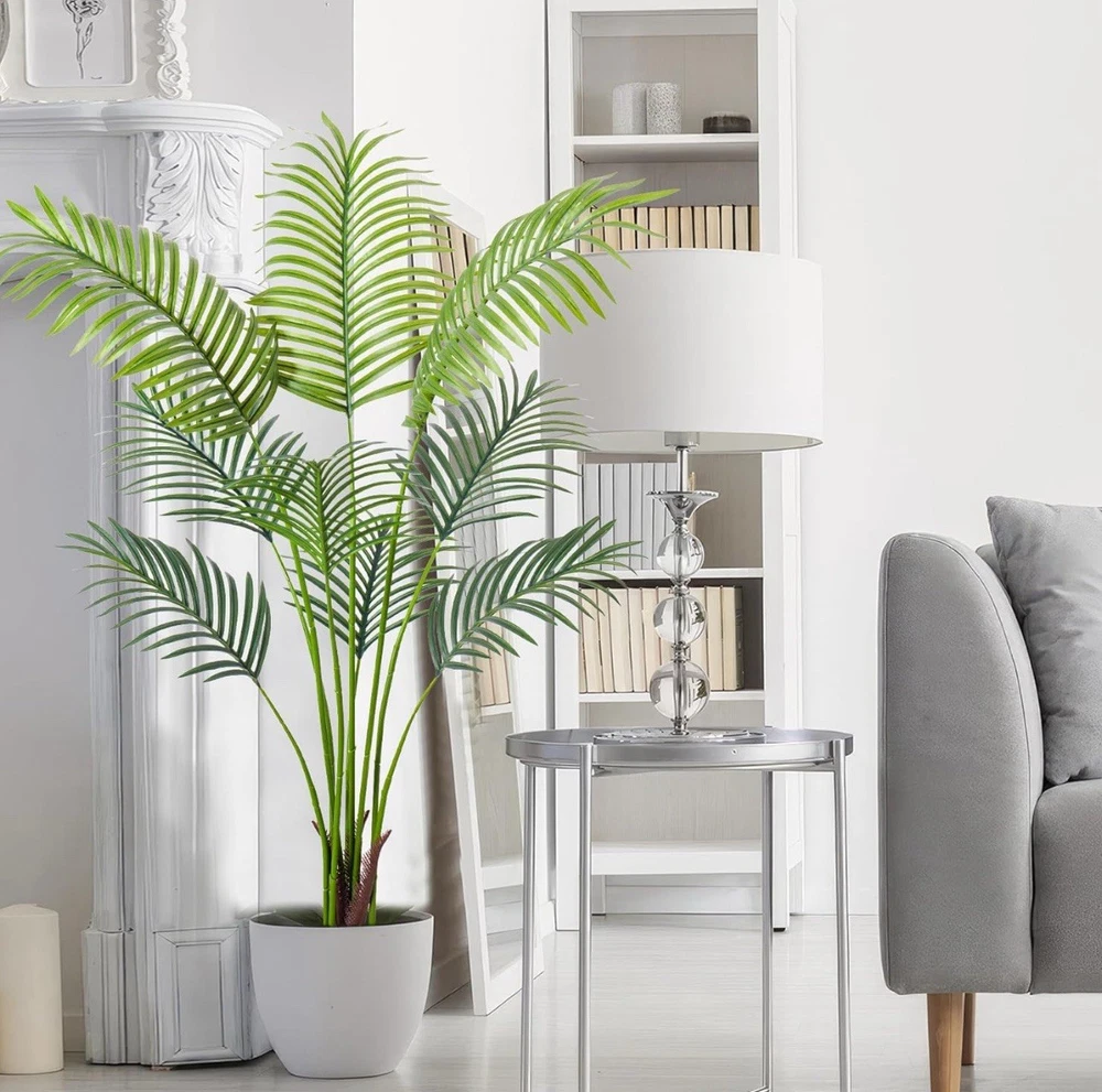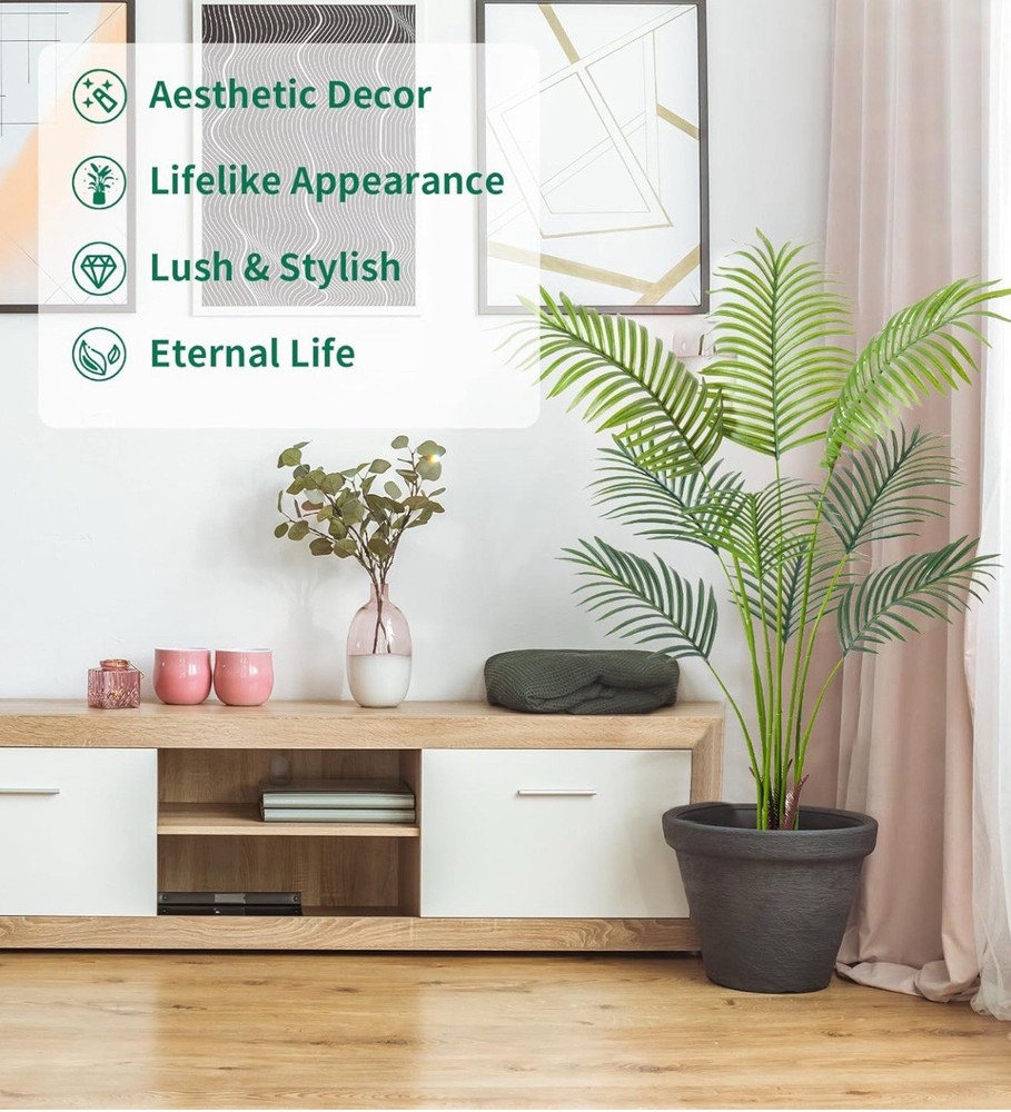 Product Dimensions 35"D x 6"W x 6"H Color Palm Tree Material Plastic Item Weight 6 Pounds Item Package Quantity 1 【 Nearly Reality Tall Fake Palm Plants 】 These artificial palm trees are 3ft/4ft/5ft/6ft/7ft from their pot bottom to the treetop after installing it. Any adjusting ways like bending its trunk and leaves will cause its height to look less. Please be aware before you buy. If you have any problems regarding this artificial tree, please don't hesitate to contact us. 【 Vivid Realistic Silk Trees 】 This artificial tree made of durable and premium polyester material features a lifelike structure and style. The Artificial Areca Palm Plant is designed according to the appearance of tropical palm plants; each leaf has a natural and bright luster and a real touch. Our artificial plants are outfitted with sturdy inner metal wires; you can adjust the leaves and branches to different angles to shape the most charming look. 【 Ideal Artificial Trees for Indoor Outdoor Decor 】 With simple and elegant style, This floor areca palm trees can be perfectly matched with any theme to become a beautiful landscape. Putting a tall artificial plant in your home, office, living room, bedroom, balcony, beside sofa, or corner, not only creates a leisurely and cozy atmosphere but also frees your eyes. 【 Easy to Maintain&Assemble 】 This faux palm tree is ideal for individuals who like plants but do not have the time to maintain a genuine one. Without water, pruning, fertilizer application, or a complicated caring routine, its leaves won’t turn yellow or fall. Wipe it clean with a damp cloth or duster if it gets dusty.