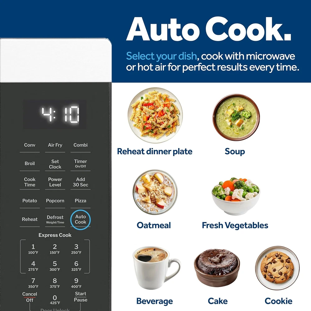 4-in-1 Microwave Oven 1050W Air Fryer Convection Broiler 1.0 Cu Ft Stainless Ste TWO-STEP CHILD LOCK: This mandatory feature helps prevent unintended use by younger family members, with the option to deactivate it if not needed. AIR FRY MODE: Cook healthier, crispier versions of your favorite foods in less time, thanks to an air fryer built into your microwave. CONVECTION MODE: Achieve crisp, golden brown results in this microwave oven with convection, which includes a special rack that allows air to circulate around foods for even heat distribution. BROIL MODE: When you have a microwave with a broiler right inside, you can achieve the same effect you do with grill racks, radiating heat to sear or caramelize any food to perfection. PRESET CONTROLS: Use microwave preset controls like Fries and Nuggets to make operation quick and easy, while ensuring precisely cooked results. COMPACT YET POWERFUL: This 1,050-watt & 1.0 CU FT. compact microwave offers the perfect balance of size and convenience, designed to fit perfectly in dorm rooms, offices and kitchens alike. GLASS TURNTABLE: Rotates food throughout the cycle for even through cooking of food. The GE 1.0 Cu. Ft. Capacity Countertop Convection Microwave Oven with Air Fry allows you to cook healthier, crispier versions of your favorite foods in less time, thanks to a built-in air fryer. Using microwave preset controls like Fries and Nuggets make operation quick and easy, while ensuring precisely cooked results. Included with microwave is a stainless microwave crisper pan specifically designed for use with Air Fry mode. This 1050-watt compact microwave also has convection mode, which includes a special rack that allows air to circulate around foods for even heat distribution for golden brown results. Automatic and time defrost options allow for maximum user control. At 1.0 cu. ft. capacity, this microwave offers the perfect balance of size and convenience, designed to fit perfectly in dorm rooms, offices and kitchens alike. Stylish and easy to clean, you can't go wrong with a stainless steel air-fry microwave. Item model number GCST10A1WSS Wattage 1050 watts Capacity 1 Cubic Feet Color Stainless Steel Product Dimensions 16.6"D x 20.6"W x 11.88"H Material Stainless Steel, Glass Country of Origin China Item Weight 35 Pounds Installation Type Countertop Voltage 120 Volts Recommended Uses For Product Residential Included Components Stainless Crisper Pan, Roller Ring, 2 Wire Racks, Glass Turntable Special Feature Child Safety Lock, Convection Mode, Included Crisper Pan, Air Fry Mode, Express Cook Size Child-Lock Technology 1.0 Cu. Ft. Shipping Fast shipping is very important for us. Our standard US shipping service is FREE. Your order will be shipped within 2-3 business days upon full payment received. Your order will be delivered within 2-3 business days after the handling time. We only ship to the confirmed PayPal address. We reserve the right to cancel any order for any reason at any time. We are not responsible for undeliverable addresses. Returns and payment We offer a 30 days return policy from checkout winning date. We allow only PayPal as payment method FeedBack Your feedback very important to us, after you get your package and you are satisfied with our service please leave us positive feedback If you have any problem with your order / any questions please before leave any type of feedback For any questions, using eBay contact system Please visit our eBay store to check out other items for sale! Thank you for shopping at our store.