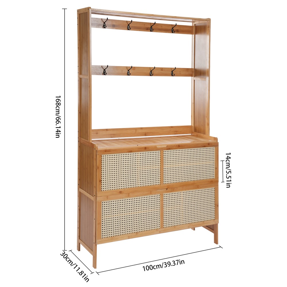 4in1 Coat Rack Closet Garment Shoe Organizer Clothes Hanger Storage Bench Shelf Description In our daily lives, a neat and organized space can make us feel relaxed and happy. The feeling of coming home starts from entering the door and changing shoes. Choose the shoe cabinet that you like to store your shoes. With its large capacity and elegant appearance, this item makes you feel warm, giving you a sense of pleasure and comfort from the moment you walk in the door. Key Features Last and Durable: It is made of high-quality bamboo, metal and density board with a painting process, which makes this item environmentally friendly , and sturdy, so it can provide good performance for a long time. Large Capacity: The two flap cabinet doors have four tiers for the orderly storage of shoes, while the platform in the middle can be convenient for you to put potted plants, keys, alarm clocks, photo albums, and other items, and the 8 hooks can be used to hang hats, scarves, coats and so on, making the environment more tidy. Excellent Load Capacity: The sturdy rectangular shape, thickened density board and high-quality bamboo allow it to hold approximately 16.5lbs per tier, so you can rest assured that your shoes will fit inside. Elaborate Design: The wide and mesh breathable cabinet doors can effectively provide air circulation for shoes, moisture-proof, anti-odor , and comprehensive protection for shoes. User Friendly: The removable panels allow you to plan freely for heels, stilettos and shoeboxes, etc. Two taller compartments specifically are designed for short boots. The 5.51inches tier spacing provides easy access to your shoes and the bottom open compartments are designed to be used for shoes you normally wear, making it easier to change them. Neat Lifestyle: This shoe cabinet cleverly integrates shoe storage into life, placing it at the doorway to put away messy shoes, making it pleasing to the eyes as soon as you open the door, bringing you a neat lifestyle. Nice Appearance: The beautiful wood color, smooth lines, and simple style make the whole product retro and solemn, which can decorate rooms of different styles. Protective Package: To prevent the product from being damaged and bumped during transportation, we packed it with foam to protect your products to the maximum extent possible. Easy to Clean: The smooth surface, raised bottom and simple structure allow you to easily remove dust and residues with a wet towel. A sweeping robot (not included) can also easily pass through the bottom, making cleaning more convenient. Details Clear Texture: The clear texture on the surface can restore the most realistic touch and give you a better feeling of use. Back Parapet: The three-sided back plate is firmly designed to prevent the shoes from scratching the wall. Wide Baffle: The wide baffle on the platform reduces the fall of potted plants, keys, etc. that you place. Folding Tension Bar: It helps you to open the shoe cupboard door more smoothly and is durable. Application It can be placed in the living room, kitchen, entrance and bedroom for storing toiletries, decorations, spices, small household appliances, books, all kinds of shoes, bags, coats, hats, small potted plants, keys, scarves, photos, toys, umbrellas and so on. Specification Material: Density Board, Metal and Bamboo Color: Wood Color Style: Modern Shape: Rectangular Process: Painting Mounting Type: Floor Standing Assembly Required: Yes Number of Tiers: 4 Number of Doors: 2 Number of Hooks: 8 Each Tier Capacity: About 7.5kg/16.5lbs Product Size: 100*30*168cm/39.37*11.81*66.14in Bottom Tier Spacing: 14cm/5.51in Package Size: 179*32.5*14cm/70.47*12.8*5.51in Gross Weight: 16kg/35.27lbs Net Weight: 15kg/33.07lbs Package Included 1* Shoe Cabinet 8* Hooks 1* Glove 1* Chinese Installation Diagram All Accessories for Installation Notes We recommend using it indoors, trying to avoid drastic changes in humidity and staying away from the air conditioning vents as much as possible. Please do not collide, knock or rub with hard objects to avoid scratching or damaging the gloss of the product surface. Please do not use corrosive detergent or hard objects for cleaning. It is recommended to use a soft cloth for wiping. Please note that the number of shoes that can be stored will vary depending on the size and height of the shoes(not included). Please allow the slight color difference caused by the shooting light and 1-3cm error due to manual measurement, and make sure you do not mind before ordering. Payment Delivery details Terms of sales About us Contact us Payment We accept ebay payment 。 Fees such as import duties, taxes are not included in the item price or shipping costs. These charges are the buyer's responsibility. Delivery details Shipping: 2-9 working days to: USA Terms of sales We maintain high standards of excellence and strive for hundred percent customer satisfaction. Feedback is very important to us. We hope that you contact us immediately before you give neutral or negative feedback, so that we can address your concerns. It is impossible to address issues if we do not know about them! About us Your satis faction is our ultimate goal. We work hard to earn your trust and future business. Our certified technicians have tested each item before shipping. The unit comes with 1 year limited warranty on all manufacturing defects. a) If you receive a defective item, you may return it or ask for a discount. Please contact us within 14 days after you receive the package. b) What you returned must be intact and in its original packaging as re? u. Customer is responsible for shipping costs of the returned item. c) We will cover the cost of shipping back t with the shipping rate indicated in the registration page. We will send you a new unit or refund the full payment you paid. Thank you. Contact us Business Hour Business Hour: Monday To Friday: 8:30 AM to 5:00 PM (Beijing China time) Due to time zones, our reply to your questions may not be immedia