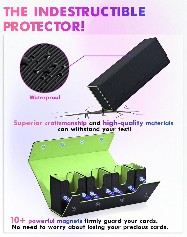 This storage box is a game-changer for MTG and TCG players! The compact yet spacious design holds multiple decks and dice neatly, while the microfiber lining keeps cards safe. The built-in dice tray is super convenient, and the sturdy construction makes it perfect for travel. Love how everything fits together seamlesslyโno more scattered cards or lost tokens. Highly recommend for anyone who wants organized, portable storage without sacrificing quality. A must-have for serious collectors and casual players alike!