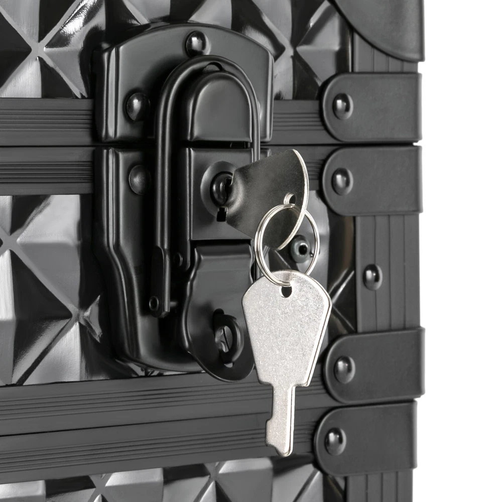 gtin13: Does not apply Type: Makeup Case Features: Heavy-Duty, Rotating, Tiered, Mirror, With Lock Color: Black UPC: Does not apply Please Note: Shipment within one working day Material: Aluminum Brand: Unbranded