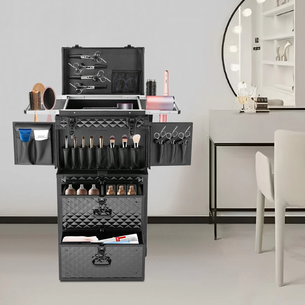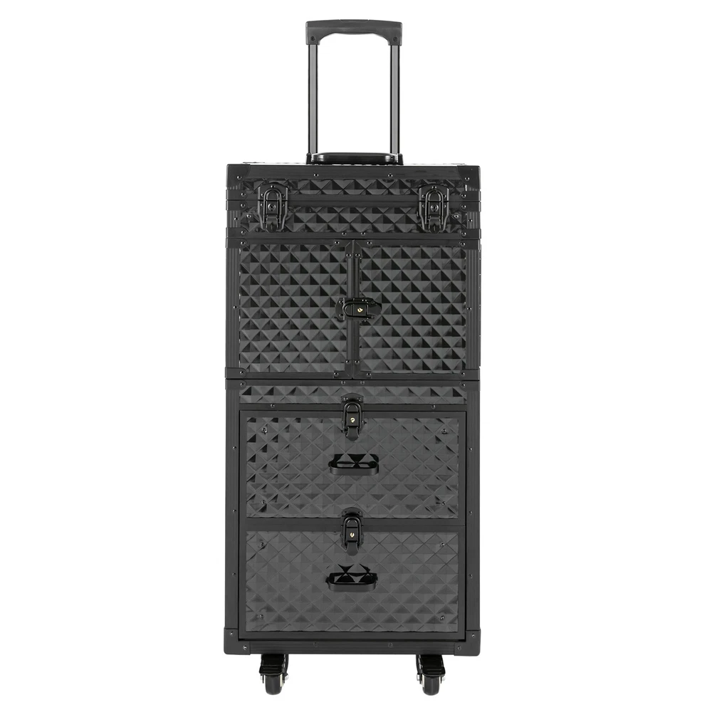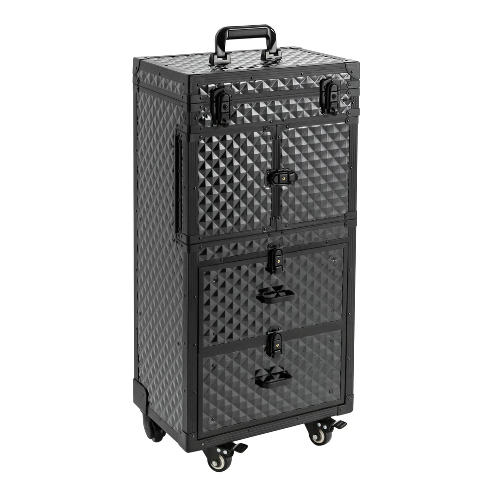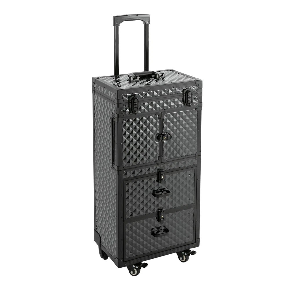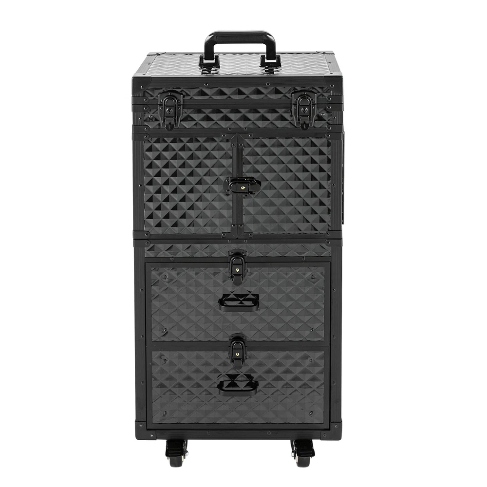 4-in-1 Pro Aluminum Rolling Makeup Case Salon Cosmetic Organizer Trolley in Black