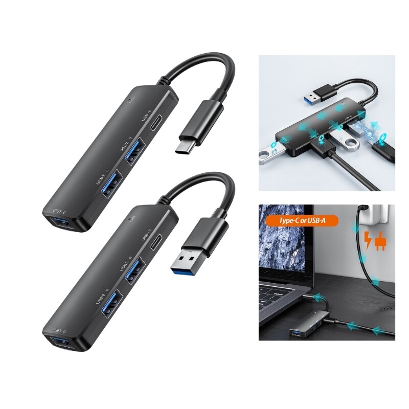 Features: Fast charging and seamless data transfer with our 3 Port USB + TypeC Hub. Equipped with three USB ports and TypeC port, this aluminum alloy hub supports Power Delivery for rapid charging and efficient data synchronization. For professionals who frequently multiple devices, our hub is a must have accessory for enhancing productivity in any workspaces. This hub ensures your gadgets are charged and ready for use. Data transfer: Type-C can be used for data transfer, convenient file transfer Specifications: Port:1xUSB3.0+2xUSB2.0 + 1xTypeC Component:Aluminum Size:aboout 8.5x3x1.1cm/3.35x1.18x0.43in Port: Port Package Includes: 1PC USB Hub note: Due to the problems of lighting effects and shootingangles, there will tolerances in the product, please understand. Please allow 0-1cm error due to the manual measurment.