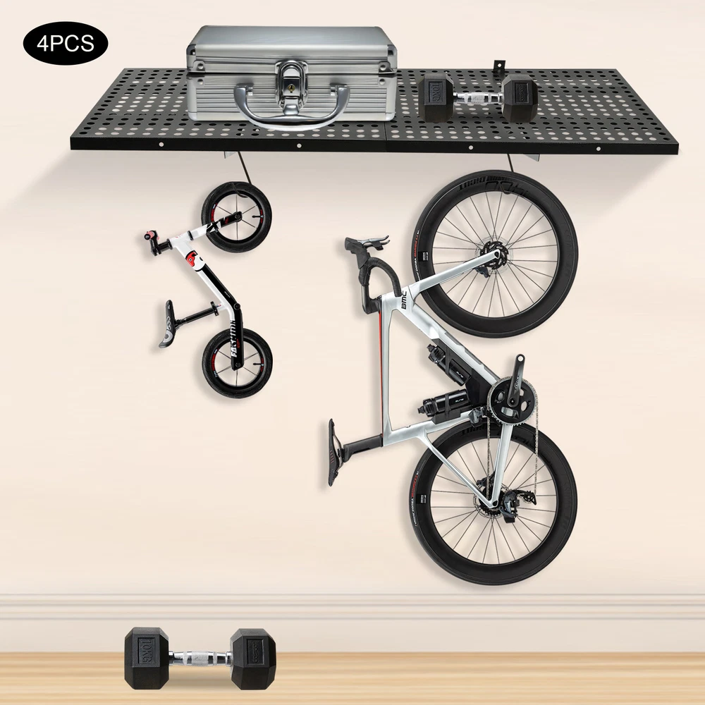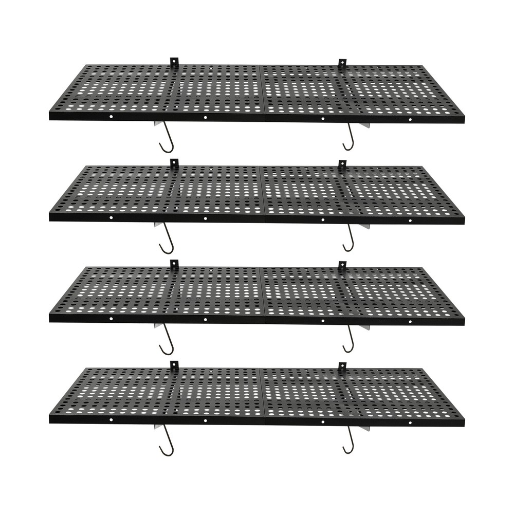 Description This set of garage wall shelves is made of high-quality carbon steel, which boasts strong load-bearing capacity, stable structure, rust resistance, and durability. The perforated surface makes it strong and non-slip at the same time, which ensures safety when storing items. Meanwhile, it is able to store a wide range of items with a load capacity of up to 560 lbs, which can help you effectively utilize your garage space and improve storage efficiency, providing you with efficient, safe, and convenient storage solutions. Key Features Sturdy&Durable: It is made of high-quality carbon steel with a plastic spraying surface, which features high hardness, high strength, and high resistance to corrosion and rust, making our products can be used for a long time. Large Capacity: The wall-mounted storage rack is 20*48 inches and the removable storage hooks can be moved to any position, allowing you to store various sizes of items and tools on it and meet your actual storage needs while saving space. Strong Structure: The stable triangular brackets and sturdy perforated panels with welding process allow our products to carry up to 560 lbs(two boards), which can meet your various storage needs. Flexible Installation: It can be installed vertically or horizontally, allowing you to use the appropriate installation method depending on the size of the installation space and the items to be stored. Money Saving: The package includes enough mounting accessories such as expansion screws and nails to save you time and money. Easy to Clean: It is simple and easy to disassemble making cleaning effortlessly. You can wipe it with a damp rag or disassemble it and rinse it with water for a complete cleaning. Space Saving: Its compact design takes up small wall space and is capable of carrying quite a lot of items. It organizes floor clutter into wall space, expanding more space to use and making your garage and storage room neater. Ideal Gift: With a strong structure and premium material, it is a nice gift for your friends, colleagues, and families for organizing their garages or warehouses. Customer Service: We aim to provide quality products and services. If you have any problems, please feel free to contact us. We will reply and solve the problem for you as soon as possible. Details Hanging Hooks: 8 hooks can help you easily store or take frequently-used tools like hammers or drills, or your clothes, making your work more convenient and highly efficient. Perforated Plates: They are not just strong and durable but also boast good ventilation, keeping your items dry and allowing the odor to dissipate in a timely manner. Application It can be installed on wooden and cement walls for storing tools and items in your warehouse or garage. How to Install Measure the installation distance of the bracket. Place the installation template against the wall and place it at the proper height by using a level. Mark the center of the circle by positioning holes of appropriate width. Remove the installation template and then punch holes in the marked positions. Install the bracket. Secure the perforated plate to the bracket. Installation complete. Specifications Color: Black Material: Carbon Steel Shelf Type: Bracket Shelf, Floating Shelf Shape: Rectangular Surface Treatment: Plastic Spray Process: Welding Mount Type: Wall Mounted Assembly Required: Yes Each Product Size(Two Boards): 50.8*121.92cm/20*48inch Each Bracket Height: 20cm/7.87inch Distance Between Center Points of Wall Studs: 60.96cm/24inch Load Bearing of Two Boards: 254kg/560lbs Packaging Size: 52*62*12cm/20.47*24.4*4.72inch Gross Weight: 18kg/39.68lbs Package Included 4*Garage Wall Shelves 8*Hooks All Accessories for Assembly Notes Please check the size carefully before ordering. It is normal that the expansion screw will blow up after the force is applied. It cannot be installed on metal walls. When installing it on cement walls, you need to drill holes in advance. When installing it on thin wood walls or hollow walls, you need to install a certain thickness of solid wood struts(not included) laid on the front or back of the wall to provide support. Before purchasing, please check the product information carefully to make sure the load bearing of your wall and the installation environment are suitable! Please check the screw hole spacing carefully if it is installed on the studs! Please allow the slight color difference caused by the shooting light and 1-3cm error due to manual measurement, and make sure you do not mind before you order. Payment Delivery details Terms of sales About us Contact us Payment We accept ebay payment 。 Fees such as import duties, taxes are not included in the item price or shipping costs. These charges are the buyer's responsibility. Delivery details Shipping: 2-9 working days to: USA Terms of sales We maintain high standards of excellence and strive for hundred percent customer satisfaction. Feedback is very important to us. We hope that you contact us immediately before you give neutral or negative feedback, so that we can address your concerns. It is impossible to address issues if we do not know about them! About us Your satis faction is our ultimate goal. We work hard to earn your trust and future business. Our certified technicians have tested each item before shipping. The unit comes with 1 year limited warranty on all manufacturing defects. a) If you receive a defective item, you may return it or ask for a discount. Please contact us within 14 days after you receive the package. b) What you returned must be intact and in its original packaging as re? u. Customer is responsible for shipping costs of the returned item. c) We will cover the cost of shipping back t with the shipping rate indicated in the registration page. We will send you a new unit or refund the full payment you paid. Thank you. Contact us Business Hour Business Hour: Monday To Friday: 8:30 AM to 5:00 PM (Beijing China time) Due to time zones, our re