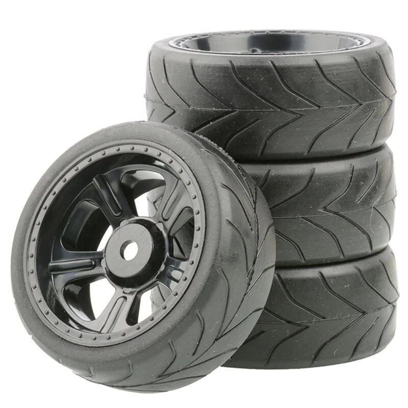 Suitable for RC 1: 10 On Road car Size: Hex 12MM Wheel Diameter 1.9 IN Width 28MM Tire out diameter 65MM Tires: Soft Rubber Wheels:Plastic wheels Not glued Package included: 4 PCS Wheel Rims and Tires with foams. NOTICE: The wheels and tires are not glued together and must be glued before use. Please carefully check the tire size before purchase, whether it is the same as your model tire size, and confirm it again before payment, so as not to return the refund, thank you, wish you a happy shopping.