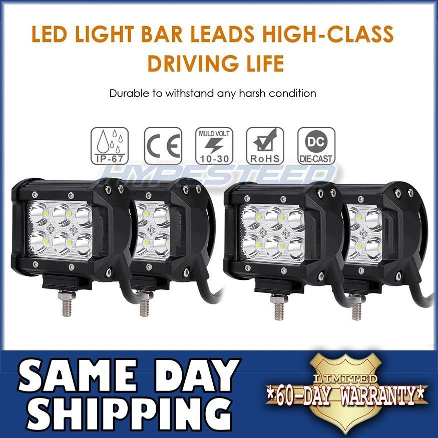 Hypesteed was born out of a love of cars. We understand the importance of creating a product that will stand the test of time, and riders need functional, reliable products to protect their families and investments. We manufacture durable core components that complement the natural lines of your vehicle Features: LED wattage: 18W LED Bulb: 6pcs each Lens: PC Reflector: Spot light 30 degree Housing: Die-cast aluminum main body Side capes: Plastic Color Temperature: 6000K Waterproof rate: IP68 Power: 9~30V DC Led lifespan: 40000 hours Current Draw: 1.1A at 12V Design for off road use LED bar size: 80mm x 97mm x 64mm (H x W x D) (excludes bracket) Overall size with 90 degree upright: 110mm x 97mm x 75mm (H x W x D) (excludes bolt) Item Spec: Left Driver Side OE Number: 84554656, GM2800308 Specific Uses For Product: Rear Lights Light Source Type: Halogen Special Feature: Waterproof Voltage: 12 Volts Lens Color: Red Model: Tail lights Package Content: 4x LED Off Road Lamp Light Application: Applicable for offroad vehicle, ATV, truck, engineering vehicle (excavator, treedozer, road roller, bulldozer, crane and mining truck), special vehicle (fire engine, rescue vehicle, communication vehicle) forklift, train, boat, bus. Attention: No Installation Guide or Instruction Included, recommended to find the professional installation. or contact us for installation video Your valid phone number is very necessary for the shipping, otherwise we can't guarantee that the package would safely arrive. Don't hassle to contact us if item stuck, unknown or fault installation !! Items are shipped as soon as possible, usually within 24 hours of ordering. Orders are processed at 10am PST Monday-Friday, with the exception of US Holidays Orders will be shipped same day if purchased before 10am, with the exception of US Holidays and weekends Orders may be shipped out via USPS, UPS, FedEx, or DHL depending on the item Surcharges will be added to VI, PR, HI, AK, MP, AS Some (large) items cannot be shipped to PO Box or APO/FPO International buyers are responsible for CUSTOMS FEES and/or DUTY FEES upon import Ships from USA (west coast) Prepaid return shipping labels offered for customers who experience defective items, or items received that are not represented by this listing Any other returns are subject to up to 5% restocking fees, depending on the item itself, length of return, and condition of the returned item Items must be returned for inspection in order to take advantage of the 90-day warranty We Offer Prepaid Return Shipping Labels (Within 14 Days after initial deliverey) For Our Customers Who Either Received A Damaged/Defective Item, Or An Item That Was Not As Described! For item inquiries, please click "Ask Seller A Question" or "Contact Seller" link. We Strive To Respond In A Timely Fashion! E-mails are responded to within 24 hours Monday-Friday, with the exception of US Holidays We Strive For 100% Customer Satisfaction, If You Are Not 100% Satisfied With Your Purchase, Please Contact Us Prior To Leaving Feedback! We Would Very Much Appreciate A Chance To Make Things Right!