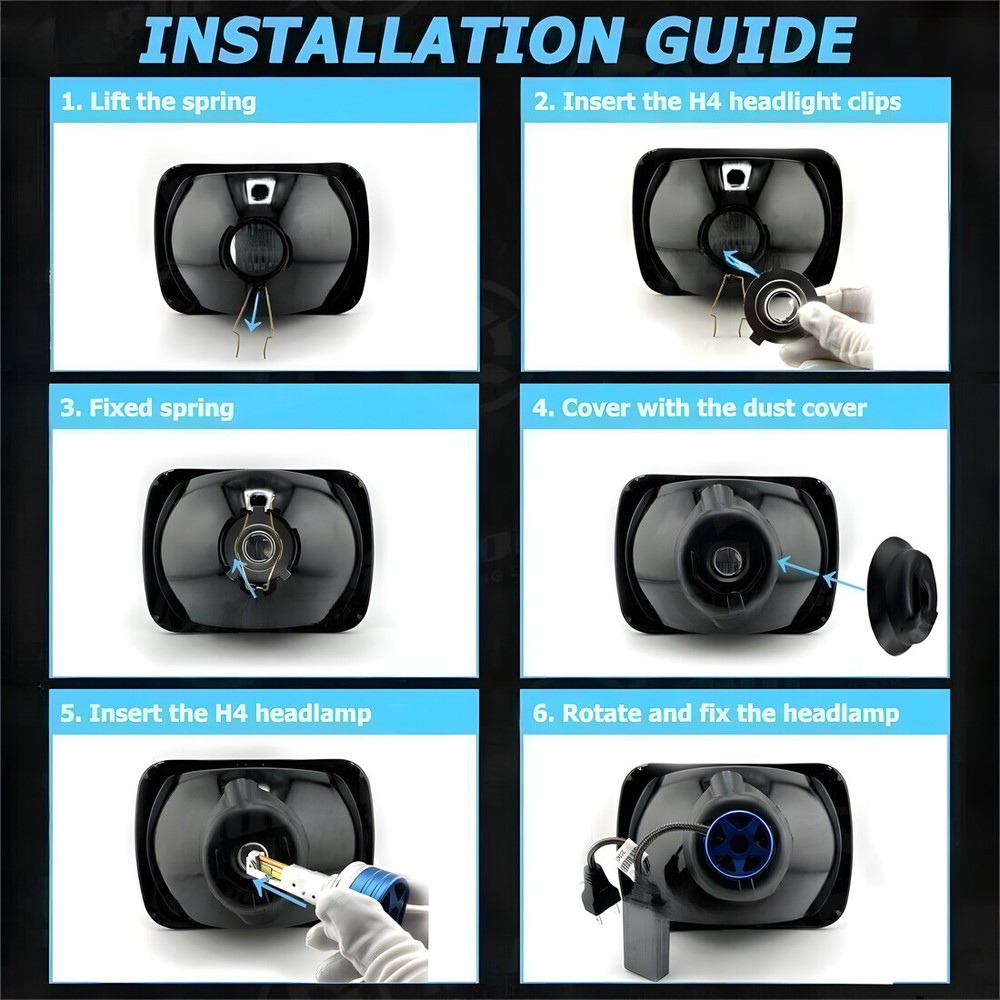 INCLUDES (4) HIGH INTENSITY LED H4 WHITE LIGHT BULBS! 4X6 NCH SQUARE HEADLIGHT - SET OF 4 Made from real glass and not cheap plastic Come with a H4 plug In-stock STOCK STYLE GLASS LENS / METAL BACKSIDE FITS STOCK BUCKETS WITHOUT MODIFICATION LOW BEAM AND HIGH BEAM BRIGHTER AND WHITER THAN STOCK LIGHTS BULBS ARE REMOVABLE AND REPLACEABLE INCLUDES 6500k WHITE LED LIGHT BULBS LOW AND HIGH BEAM FUNCTION PLUGS INTO FACTORY WIRING PLUGS DOT / SAE APPROVED THIS LISTING IS FOR A NEW SET OF 4 - 4x6" STOCK STYLE GLASS LENS / METAL BACKSIDE H4 CONVERSION HEADLIGHTS WITH WHITE LED LIGHT BULBS. THIS SET INCLUDES 2 HIGH BEAM & 2 HIGH / LOW BEAM HEADLIGHTS. THESE HAVE THE ORIGINAL SHAPED PRONGS ON THE BACK SO THEY WILL PLUG RIGHT INTO YOUR ORIGINAL WIRING HARNESS PLUGS. THESE ARE BRIGHTER AND WHITER THAN THE STOCK STYLE INCANDESCENT SEALED BEAM HEADLIGHTS. IN RARE CIRCUMSTANCES, WIRING MODIFICATION MAY BE REQUIRED. THESE ARE FOR ANY CAR OR TRUCK THAT HAS 4 SQUARE 4x6" HEADLIGHTS. DOT / SAE APPROVED. Description: Model: H4/HB2/9003 light Source Model: LED Chip, 2-sides leds, super bright Power: 200w/Set & 100w/bulb Lumen: 16000LM/Set & 8000LM/bulb Operating voltage: DC9-32V Beam Type: High beam & Low beam& Fog beam Material: Aluminum PCB and PA66+30% GF Plastic Beam Angle: 360° Color Temperature: 6000K-6500K Cool White Lifespan: over 50000h Working Temperature: -40-+80 Centigrade Waterproof rate: IP 68 Plug for this listing: H4/HB2/9003 Plug High Low Beam LED Headlight Bulbs Kit Connector Type: Plug and Play Application: LED Headlights Headlamp Lamp Bulbs High or Low Beam No Splicing of harnesses required for LED bulbs Uses 75% less power than Halogen or HID bulbs 3 times brighter than stock halogen bulbs OBC Error free operation Dramatically improves visibility at night INTERCHANGE: H4656 / H4651 / 4651 / 4652 THESE ARE GLASS AND WE WILL TAKE EXTRA CARE IN PACKAGING. Package Includes: 2 Pair of Headlight Hous ing (Pair Passenger and Driver Side) 2 Pair of H4 9003 LED Bulbs