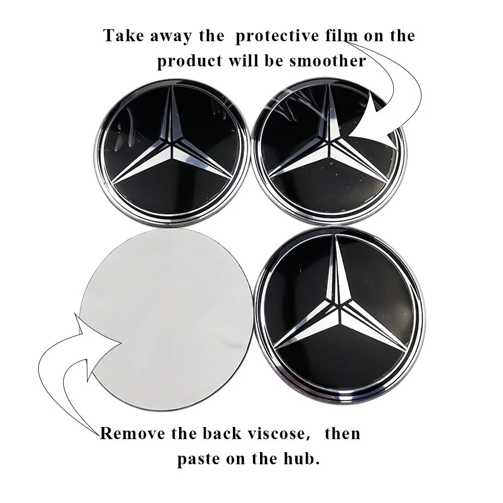Note: The diameter of the hub sticker is 56mm and the design of the cam Suitable for: Mercedes Benz Brand: XH Item Type: Wheel Hub Cap Sticker Diameter: 56mm Quantity: 4 pieces