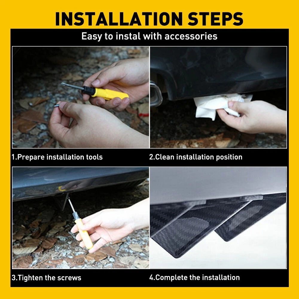 Features: 100% brand new and high quality Universal rear lower body bumper diffuser shark fin Personalize and update your car, stylish design gives a customized look. Ultra-lightweight and stylish in appearance. General; requires professional installation Specifications: Type: Rear bumper lip guard Material: ABS carbon fiber Vehicle location: rear Weight: (1 set/4 pieces) 150g Size: 15 * 3 * 5CM (1 set / 4 pieces) Installation: double-sided adhesive paste or perforated installation, screw fixation Package Contents: 1x 4Pcs Rear Bumper Spoiler 16 x screw 1x Double-sided tape Note: 4pcs Car Fiber Carbon Auto Rear Lower Diffuser Bumper Splitter Fins Lip Wing D Features: 100% brand new and high quality Universal rear lower body bumper diffuser shark fin Personalize and update your car, stylish design gives a customized look. Ultra-lightweight and stylish in appearance. General; requires professional installation Specifications: Type: Rear bumper lip guard Material: ABS carbon fiber Vehicle location: rear Weight: (1 set/4 pieces) 150g Size: 15 * 3 * 5CM (1 set / 4 pieces) Installation: double-sided adhesive paste or perforated installation, screw fixation Package Contents: 1x 4Pcs Rear Bumper Spoiler 16 x screw 1x Double-sided tape Note: 1. The real color of the item may be slightly different from the pictures shown on website caused by many factors such as brightness of your monitor and light brightness. 2. Please allow slight manual measurement deviation for the data. Item Specifics Brand Unbranded Placement on Vehicle Rear Material ABS carbon fiber Color Carbon Fiber Type Fender Flares , Rear bumper lip guard Fitment Type Direct Replacement Warranty 2 Year Interchange Part Number Rear Body Lower Bumper Spoiler Diffuser Shark Fin Number of Pieces 4 Manufacturer Part Number Does Not Apply Surface Finish Polished Attachment Method Screws FAQ ♥ If you have a decoding problem or any other problems, please contact us first, we will help you with it. We will reply you within 24 hours in working days. I'm a new seller, thanks a lot for your trust and convince! I will serve you with all my heart. ♥ Q1: Will this bulb fit my vehicle? A: We can match almost any vehicle to one of our bulb sizes. eBay only lets us include some vehicle fitments per listing, but if your vehicle does not show up on the compatibility table at the top of our listings, welcome you to contact us for free consulation before purchasing a product. Q2: My item has not arrived, what's taking so long? A: Sometimes items take longer than expected, especially if it’s going far or to rural area. Check with your post office to see if your item has been held up. Sometimes Royal Mail will not update a tracking number until it has arrived at its destination. If your item still don't arrive after a few days, let us know so we can double check for you and help solve it asap. Q3: My bulbs won't fit, help! A: Special bulb holder may be required. See if you can take the holder from the stock bulb. If not, let us know. The bulb size may be wrong, double check the item you received with the item you ordered. Do you have an aftermarket lighting housing? These may not be perfectly fitted for aftermarket bulbs and will require some manual modifications. Q4: Neither side lighting up? Both sides flicker, hyper flash, or work inconsistantly. A:Check the light fuses, and then check the ballast plugs to insure correct installation. If this doesn't work, there may be a voltage problem with the vehicle. You probably just need a relay or capacitor. Even though some bulbs are builtin resistors, they may still need a decoder. Pay & Ship (1). We gladly accepts payment via PayPal, We will ship your item(s) within 24 hours. (2). Before payment, please keep the consistency of Paypal address and ebay address. (3). Quantity orders are welcome! Returns (1). We offer 60 days free return policy. Please contact us within 60 days from the date you receive your order if you have any issues with the product or want return. Refund will be send after we got your resend package. (2). All returned items should be in the original packaging , return tracking information should be provided . Contact Us (1).Negative feedback will not help resolve any problems you have, please contact us via eBay messages before leaving negative feedback , our customer service will make best effort to help you with the issues. (2).We maintain high standards of excellenceand strive for 100% customer satisfaction! Feedback is very important to us. We request that you contact us immediately before you give us neutral or negative feedback, so that we can satisfactorily address your concerns. About us We're professional in car and motorcycle accessories, especially in LED bulbs. We have our own factory and R&D team. Our belief is to sell top quality items that fit your car and serve you with our heart. Anything please feel free to contact us! Our customer service is very responsibility. Come and follow us! DESCRIPTION NEW ARRIVED HOT SALE CONTACT US SAVE US Store Category Store Home Other Hot Item For Ford Mustang GT Rear Diffuser 4 Bumper Fins Splitter Chin Spoiler Lower Lip USD 36.09 Rear Lower Bumper Diffuser 4Fin Spoiler Lip Splitter Wing Universal USD 11.39 4PC OEM Mud Flaps Splash Guards Mudguards Fender For Honda Civic Hatchback 17-21 USD 24.69 Universal Car Bumper Spats Rear Lip Splitter Canard Diffuser Spoiler Gloss Black USD 14.99 Universal 8x Car Rear Shark Fins Lower Bumper Diffuser Splitter Lip Carbon Fiber USD 24.03 New List Item For Acura TLX TL RLX Rear Diffuser Rear + Spats Splitter Bumper Spoiler Chin Lip USD 59.99 Carbon Fiber Rear Bumper Fin Diffuser Splitter Canard Lips Fit Honda civic 16-18 USD 16.99 For Mercedes Benz C250 C300 Carbon fiber Rear Lip Bumper Valance DiffuserSpoiler USD 37.99 For 2014-2022 Real Q50 Infiniti Carbon Fiber Eyelid Headlight Cover Eyebrow Part USD 19.99 2x Fits 2003-2009 NISSAN 350Z Headlight Eyebrow Eyelids Cover Carbon Trim Fiber USD 17.99 Pictur