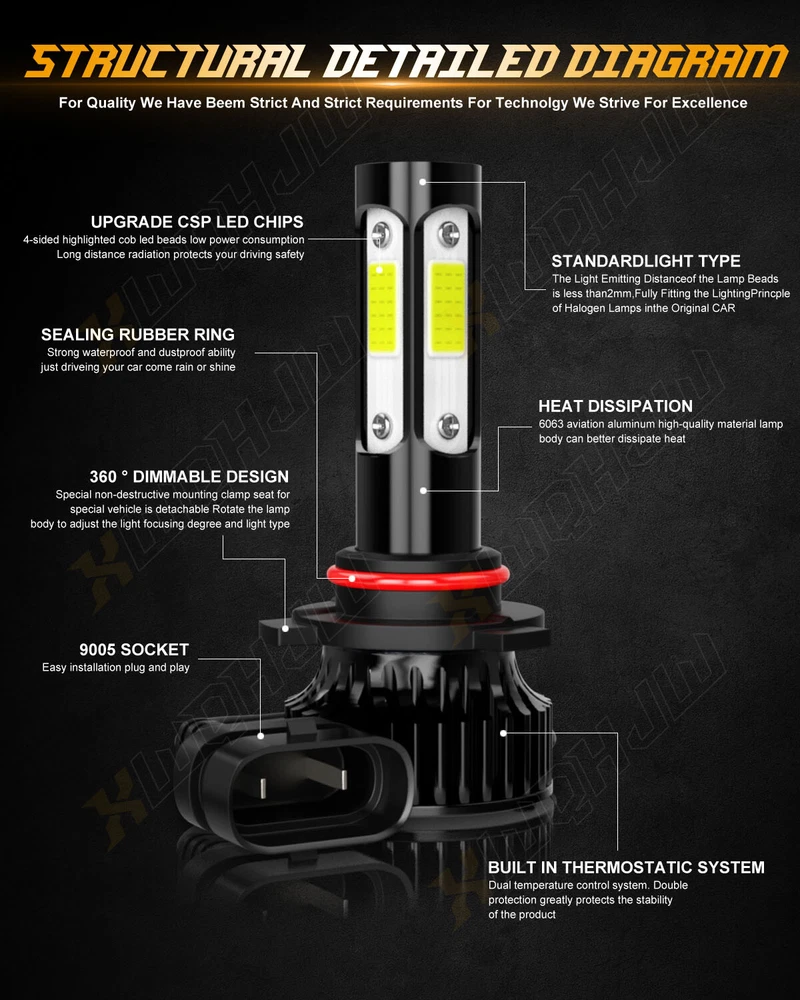 Set Of 4 Super Bright 9005/HB3 + H11 LED Headlight Bulbs Specification: Bulb Type: 9005/HB3, H11 Color temperature: 6000K white Beam Angle: 360 Degree Working Temperature: -40-150 degree Voltage: DC 9V~32V, built in IC driver, much more stable than normal LED bulbs, longer lifespan Heat Control: Aluminum Body Lifetime: >50000 hrs Waterproof: IP67 Lumens: 5500 lm per Bulb Features: 360 degree lighting, no dark spots. Wider visibility & brighter light. Highly-efficient and reliable cooling system keeping the lamp running at optimal performance and ensures a longer lifespan lasting up tp 50000 hours. Controlled by smart driver, output is infinitely close to the power of the original car, which solves flickering and error warning of most vehicles. Almost 1:1 same size to halogen, perfectly fit for 99%+ vehicles without problems in installation. 360 degree rotatable mounting bracket: adjusting the light shape to the best position, no nore scattered light. 1:1 same beam pattern: special light reflector effectively simulates halogen lamp's beam pattern, which solves the problem of focusing unevenly and dark area problems. Clear cut-off line, avoids blinding to oncoming traffic without dazzling other drives. Core technology of lighting: Smaller luminous surface distance, more focus and better pattern luminous surface distance only about 2mm. +300% vision area see wider and farther. IP67 waterproof: Rain-proof design for driver ensures the bulbs work normally under the extreme weather. Perfect replacement for the halogen and incandescent headlamp, Easy installation about taking about 5 minutes. Package: 4x 9005/HB3 + H11 Headlight bulbs Note: Please check your car manual or original bulb to confirm the bulb size, length is correct or not before purchasing to save your time. After buying enough products, please contact us directly if you have any questions, our customer service team will reply your questions/questions within 0-48 hours, thank you for your support! Key Features How Do I Know These LED Bulbs are Right for My Vehicle? Plese check the size on Ebay fitment guide system ( Ebay filter system may not be up to date. ) Plese check your vehicle user manual or original halogen bulb, the part number is marked above. Plese search "automotive bulb look-up" online, and enter your vehicle info to find out the correct size. Or in 'Customer questions & answers', write down your vehicle year, make, and model, we will help you check. XWQHJW Q&A RETURNS SHIPPING PAYMENT CONTACT US XWQHJW Q&A Q1: Will this bulb fit my vehicle? A1: We can match almost any vehicle to one of our bulb sizes. eBay only lets us include some vehicle fitments per listing, but if your vehicle does not show up on the compatibility table at the top of our listings, welcome you to contact us for free consulation before purchasing a product. Q2: My item has not arrived, what's taking so long? A2: Sometimes items take longer than expected, especially if it’s going far or to rural area. Check with your post office to see if your item has been held up. Sometimes Royal Mail will not update a tracking number until it has arrived at its destination. If your item still don't arrive after a few days, let us know so we can double check for you and help solve it asap. Q3: My bulbs won't fit, help! A3: Special bulb holder may be required. See if you can take the holder from the stock bulb. If not, let us know. The bulb size may be wrong, double check the item you received with the item you ordered. Do you have an aftermarket lighting housing? These may not be perfectly fitted for aftermarket bulbs and will require some manual modifications. Q4: Neither side lighting up? Both sides flicker, hyper flash, or work inconsistantly. A4:Check the light fuses, and then check the ballast plugs to insure correct installation. If this doesn't work, there may be a voltage problem with the vehicle. You probably just need a relay or capacitor. Even though some bulbs are builtin resistors, they may still need a decoder. Q5:Why after installing the bulb, there have the flicker/error message/radio interference? A5: Some car's system is sensitive to the led bulb, we can send the decoder/resistor to help you solve the problem. RETURNS (1) We offer 60 days return policy. Please contact us within 60 days t from the date you receive your order if you have any issues with the product or want return .Refund will be send after we got your resend package. (2) All returned items should be in the original packaging , return tracking information should be provided. (3) Buyer is responsible for return shipping cost due to the problem not caused by item quality itself. (4) Items to be returned must be in resalable condition, for example: Item do not fit your vehicle perfect The item arrived be broken Parcel Lost If you have problems with the above issue, please Contact Us immediately. SHIPPING Domestic(U.S.) Shipping All items will be shipped out within 1 or 2 business days with cleared payment. Please included your phone number to the payment note for prompt and secure shipment. Tracking numbers for all orders are added to eBay once they have been dispatched; please login to eBay to find the tracking information for your order. Most items are shipped USPS first class mail, delivery usually takes just 4-6 business days. Additionally, we do not ship on weekends. International Shipping Puerto Rico: As we use standard USPS, PR is considered a US territory for mailing purposes, and can be selected as such at checkout. Shipping will be domestic U.S. rates. For Canada & Mexico or other countries We use the eBay's Global Shipping Program. Once you’ve paid for your item, we'll send it to the global shipping center within 1 or 2 business days. From there, it's sent to you. Lost Shipments For non-signature required shipments: If the tracking information that corresponds to a shipment confirms that the product was delivered to the intended address, the customer assumes all responsi