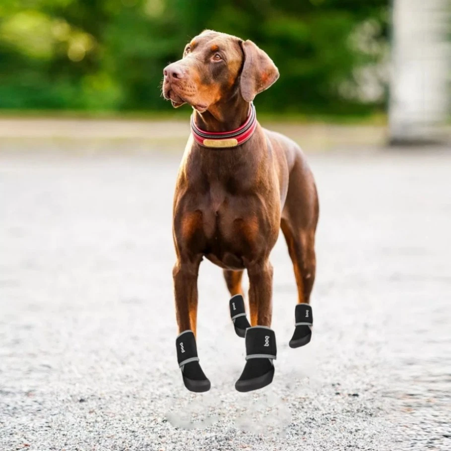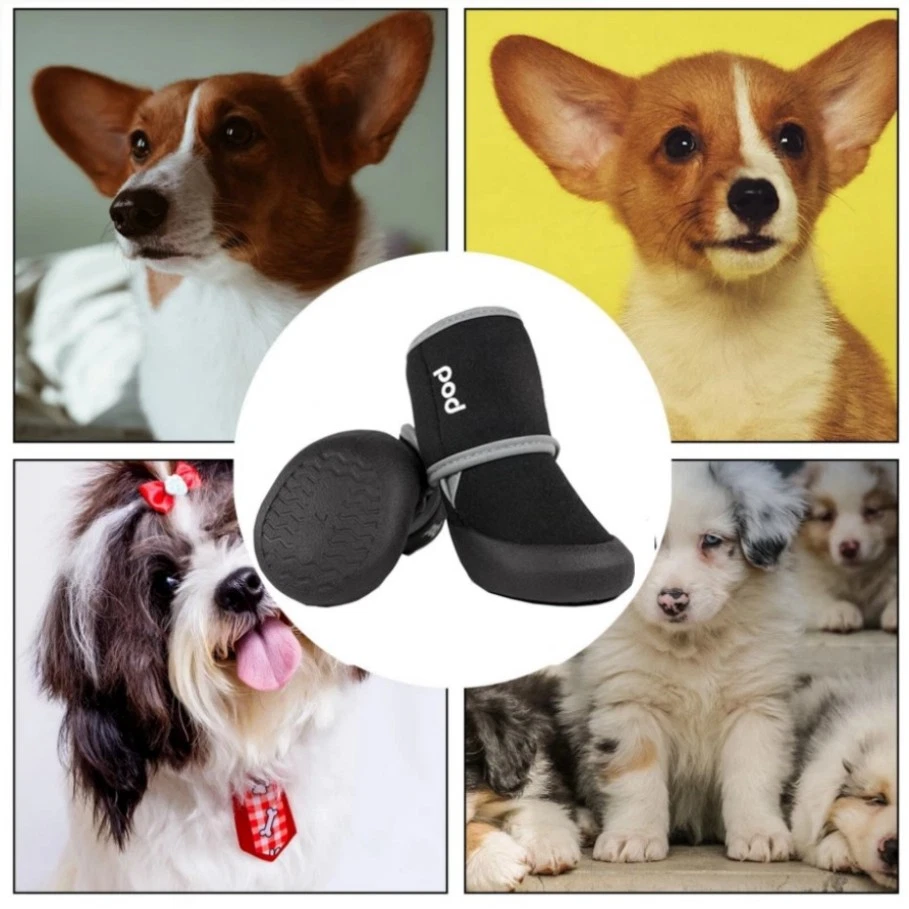 Features: 1.Suitable for Large Dogs: Designed in size L, perfect for large dogs with specific foot measurements. Ensure to measure your pet's foot size before purchasing. 2.Anti-Slip Design: Equipped with high-quality anti-slip texture on the bottom, providing excellent traction for elderly dogs on unpaved or slippery surfaces. 3.Adjustable Velcro Strap: Features an adjustable Velcro strap that secures the socks in place, preventing them from easily falling off during activities. 4.Multipurpose Usage: Ideal for both indoor and outdoor use, the waterproof bottom keeps your dog's paws dry on damp ground and helps prevent scratching on carpets or wooden floors. 5.Strong Protection: Offers robust protection against overheating, cracking, and allergens, ensuring comfort and safety for dogs walking on hot roads or slippery floors.  Describe: Condition:New Brand:Unbranded Type:Boots/Shoes Dog Size:L Features:Waterproof Material: 40% polyester, 45% SPR, 15% TPE Specification: 4-pack Color:Black 1 Package include:1Set x Dog Shoes(A set of four)