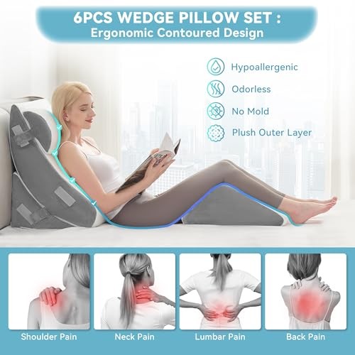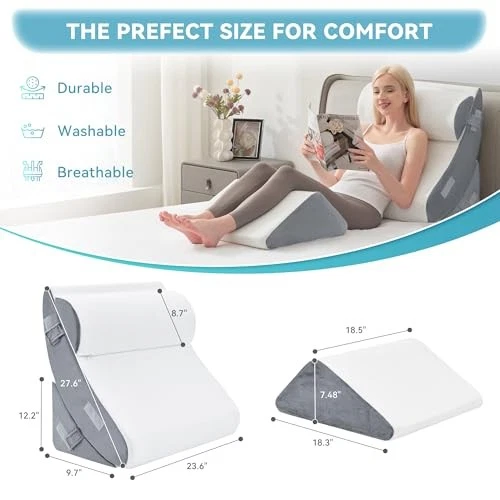 Shape: Wedge Item Firmness Description: Soft Use for: Whole Body Material Feature: Breathable gtin13: Does Not Apply Number of Pieces: 4 Specific Uses For Product: Post Surgery EAN: Does Not Apply Item Height: 7.2 Pattern: Solid Color: White Customer Reviews: 4.4 out of 5 stars Type: Does Not Apply Unit Count: 4.0 Count Special Feature: Bagged Item Length: 24 Item Width: 8 Item Weight: 8.18 pounds Material: Memory Foam MPN: Does Not Apply Age Range Description: Adult Package Dimensions: 24 x 8 x 7.2 inches UPC: Does Not Apply Brand: Does Not Apply Recommended Uses For Product: Medical Size: 4 Piece Set Product Care Instructions: Machine Wash Date First Available: February 28, 2022 Fill Material: Memory Foam