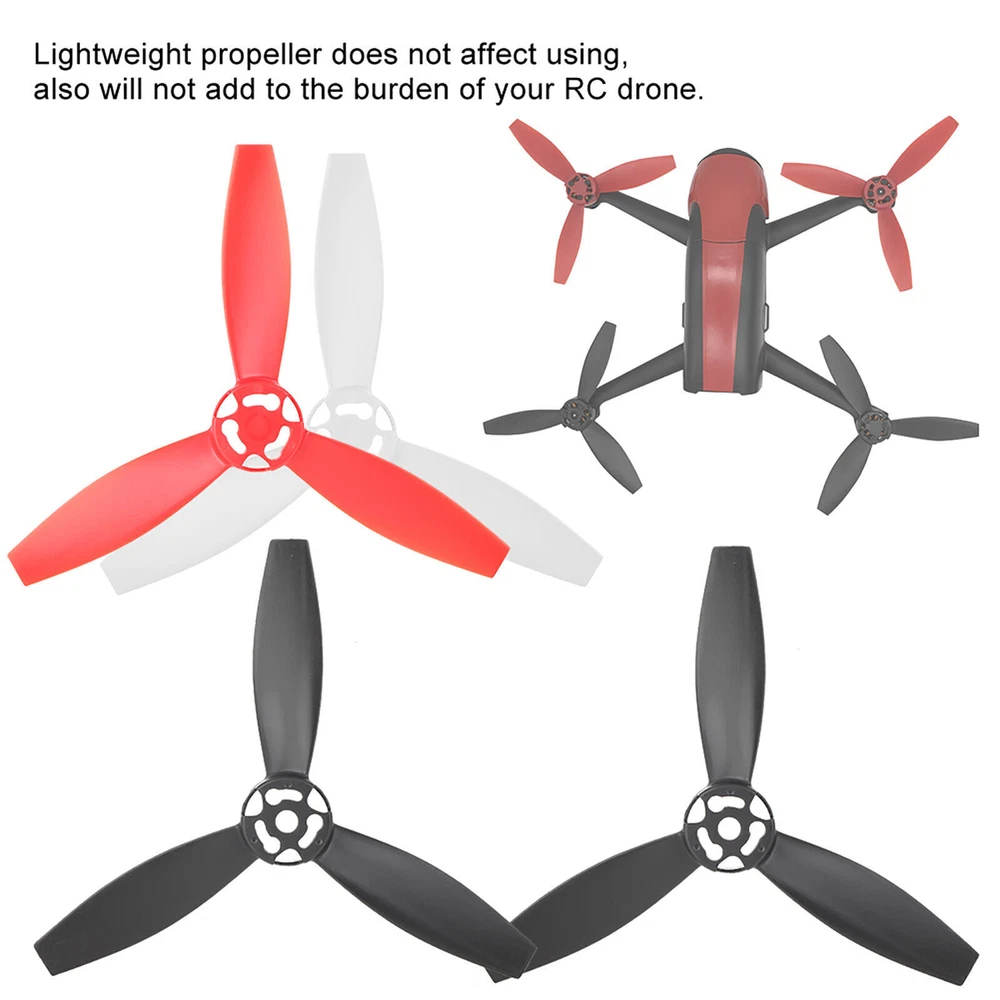 Feature: 1. Lightweight propeller does not affect using, also will not add to the burden of your RC drone. 2. Triangular designs, more aerodynamic efficiency, reduce the impact on the blade damage. 3. Light weight, strong traction, provide a better experience for your RC drone. 4. Easy to install, great replacement parts for your old or broken one. 5. Special designed, the propeller is fit for Bebop 2 RC Drone. Specification: Condition:100% Brand New Item Type: RC Accessories Material: Plastic Optional Type: Type A (4pcs Black), Type B (2pcs Black, 2pcs Red), Type C (2pcs Black, 2pcs White) Quantity: 4Pcs Diameter: Approx. 7.5cm / 3in Height: Approx. 1.3cm / 0.5in Weight: Approx. 18g/0.6oz Fitment: Fit for Bebop 2 RC Drone Package List: 4 x Propeller Note: 1. Delivery does not include drones. 2. Please allow 1-3mm error due to manual measurement. 3. Pictures may not reflect the actual color of the object due to different lighting and display differences.