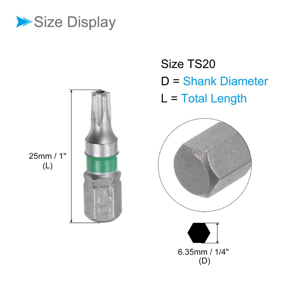 Document Attributes:*Size: TS20*Shank Diameter: 6.35mm / 1/4"*Total Length: 25mm / 1"What Is Included:* 4 Pieces x Screwdriver BitApplications & Features:--- Suitable for industrial use and comes with a manual electric screwdriver, electric screwdriver, electric drill, and pneumatic drill.--- It is a commonly used tool in furniture installation, car repair, and other general tools. It is a commonly used tool in furniture installation, car repair, electronics factory, office installation, kitchen installation, and other projects.These screwdriver bits feature a magnetic design that allows them to easily attract and hold screws. This feature ensures convenient installation by securely holding the screw in place before and after fastening, preventing accidental drops or misalignment.--- The screwdriver bit is made of S2 steel, which is wear-resistant and impact-resistant, with a hardness of up to 58HRC.Useful Tips:--- Do not turn the screws with mismatched sizes to avoid damage to both the screw and the drill. 4pcs TS20 Magnetic Torx Screwdriver Bit 25mm Long Magnet 6 Point Tamper Proof Attributes: *Size: TS20 *Shank Diameter: 6.35mm / 1/4" *Total Length: 25mm / 1" What Is Included: * 4 Pieces x Screwdriver Bit Applications & Features: --- Suitable for industrial use and comes with a manual electric screwdriver, electric screwdriver, electric drill, and pneumatic drill. --- It is a commonly used tool in furniture installation, car repair, and other general tools. It is a commonly used tool in furniture installation, car repair, electronics factory, office installation, kitchen installation, and other projects.These screwdriver bits feature a magnetic design that allows them to easily attract and hold screws. This feature ensures convenient installation by securely holding the screw in place before and after fastening, preventing accidental drops or misalignment. --- The screwdriver bit is made of S2 steel, which is wear-resistant and impact-resistant, with a hardness of up to 58HRC. Useful Tips: --- Do not turn the screws with mismatched sizes to avoid damage to both the screw and the drill. Hot Item Payment 1.We accept eBay payment . 2.Payment must be received within 7 business days of auction closing. Shipping 1.We ship to your eBay or Paypal address. Please make sure your eBay and Paypal address is correct before you pay. 2.Items will be shipped within 1-3 business day when we received payment. 3.Delivery time depends on destination and other factors. Description Policy 4pcs TS20 Magnetic Torx Screwdriver Bit 25mm Long Magnet 6 Point Tamper Proof Attributes: *Size: TS20 *Shank Diameter: 6.35mm / 1/4" *Total Length: 25mm / 1" What Is Included: * 4 Pieces x Screwdriver Bit Applications & Features: --- Suitable for industrial use and comes with a manual electric screwdriver, electric screwdriver, electric drill, and pneumatic drill. --- It is a commonly used tool in furniture installation, car repair, and other general tools. It is a commonly used tool in furniture installation, car repair, electronics factory, office installation, kitchen installation, and other projects.These screwdriver bits feature a magnetic design that allows them to easily attract and hold screws. This feature ensures convenient installation by securely holding the screw in place before and after fastening, preventing accidental drops or misalignment. --- The screwdriver bit is made of S2 steel, which is wear-resistant and impact-resistant, with a hardness of up to 58HRC. Useful Tips: --- Do not turn the screws with mismatched sizes to avoid damage to both the screw and the drill. Hot Item Payment 1.We accept eBay payment . 2.Payment must be received within 7 business days of auction closing. Shipping 1.We ship to your eBay or Paypal address. Please make sure your eBay and Paypal address is correct before you pay. 2.Items will be shipped within 1-3 business day when we received payment. 3.Delivery time depends on destination and other factors.