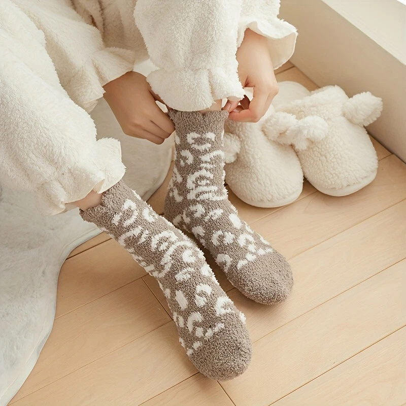 Composition: 95% Polyester,5% Spandex Material: Polyester Operation Instruction: Machine wash, do not dry clean Pattern: Geometric-pattern Socks Type: Fuzzy Socks Quantity: 4 Pairs Weaving Method: Knit Fabric Item ID: PB407598