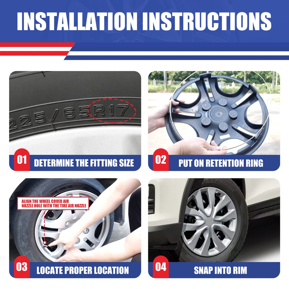 Head Lights Tail Lights Fog Lights Turn Signal Bumper Fender Flare Inner Fender Hubcaps Refrigerator Other Items for sale Head Lights Tail Lights Fog Lights Turn Signal Bumper Fender Flare Inner Fender Liners Portable Refrigerator 4pcs Wheel Covers Full Rim Snap On Hub Caps For 2014-2020 Nissan Rogue 17" Inch Compatibility : Fit For 2014-2020 Nissan Rogue 17" Wheel Specifications: High quality manufacturing process can prevent product cracking, fading and powdering. Made of high-quality flexible ABS & PC material, sturdy and durable, with adjustable buckle design. Wheel Rim Cover has a graded fixing ring and as long as the wheel hub cover is installed properly, it will not fall off during driving. Check the wheel rim size (diameter) of the tire and check the number after the letter "r" . Only suitable for iron wheels, not aluminum alloy wheels! Please check tire size before purchase! Material: ABS & PC Rim size: 17 inches Color: Sliver Packaging included: 1 set of 4 wheel hub covers Payment Shipping Return About us Contact us Payment Appreciated for the prompt payment, Contact us if bid by mistake, system open unpaid item automatically. Payment must be complete within 3 days from the date you purchase or after the end of auction. Items unpaid within 3 days of the auction end will be forfeited. We reserve the right of cancel the order and re-selling the items. Shipping All shipment will ship by UPS or USPS . All items will be ship within 1 working days , and we will ship out all orders as soon as possible after payment verified, please allow up to 1-4 business days for delivery. CANADA & International customers please note: your government might charge a duty tax (brokerage fees). We do not responsible for any custom duty or import tax. Why Choose the US Stock? 1. Us Local Shipping, No Extra Customs Cost to the US. 2. Fast Delivery: 1-4 Working days Delivery. 3. Best After-Sales Service!!! Return The buyer is responsible for all return shipping including a result of customer error or defective item. 1) If you received an incorrect, damaged, defective, or item not as described, contact us for full refund or replacement on our cost. 2) If you want to return the item, please contact us within 60 days after package received. Return products must also be in its original condition: including box, packaging and all other accessories. About us We are the best auto parts, we have been pursuing excellence, continuous exploration as the slogan, let customer satisfaction is our purpose! We adhere to the United States local delivery, one year warranty! Welcome! Contact us How Should You Contact us? Please Read The Item Description And See if The item Fits Your Vehicle Exactly. If You Found Any questions, Feel Free to email us by "Ask a question" Our Office Hours Are Monday - Friday 8:00am - 5:00pm PST / 11:00am - 8:000pm ET, We Do Not Answer Any E-Mails On Weekend, And We Will Reply All E-Mails In The Order It Was Receive. All E-Mail Take Us Around 24 Hours To Respond To Any E-Mail. We Are Close During The Weekends And We Do Not Answer Any E-Mails During That Time.