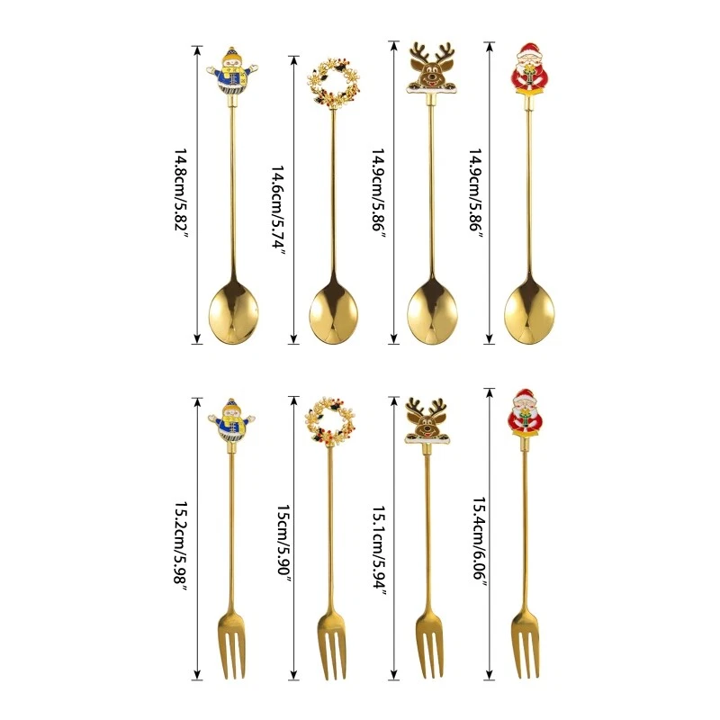 Features: and high Comfortable handle polished, will not damage your hands and mouth during use. stainless steel, sturdy and smooth, strong and durable, not easy to fade and easy to Multi-purpose: It can be used to eat desserts, stir coffee, eat fruits and salads, Suitable for home, restaurant, giving and other occasions. The hanging ornaments on them are very beautiful, including Christmas snowman, Santa Christmas Christmas elk and so on. This package includes 4pcs spoons or forks, essential for families or restaurants. Specifications: Stainless Steel Spoon Size: Snowman: 2.5x14.8cm /0.98x5.83in 2.5x14.6cm/0.98x5.75in Elk: 2.5x14.9cm /0.98x5.87in Santa 2.5x14.9cm/0.98x5.87in Fork Size: Snowman: 1.5x15.2cm/0.59x5.98in 1.5x15cm/0.59x5.91in Elk: 1.5x15.1cm /0.59x5.94in Santa 1.5x15.4cm/0.59x/6.06in Color: As pictures shown Optional Styles: Spoon / Fork Quantity: 4pcs/set Package Includes: 4 x Spoon or 4 x Fork note: Please allow 0-1cm error due to manual measurement. pls make sure you do not mind before you bid. Due to the difference between different monitors, the picture may not reflect the actual color of the item. Thank you!