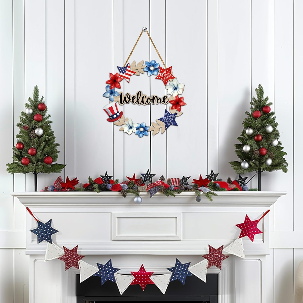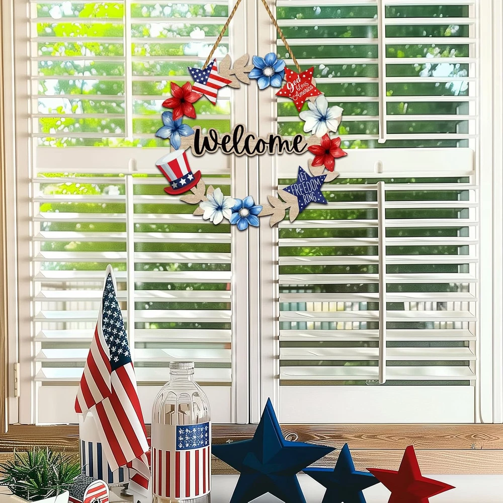 Absolutely love this rustic wooden wreath! The perfect blend of red, white, and blue adds a festive touch to my front door. Lightweight yet sturdy, it's easy to hang and looks fantastic for Fourth of July and Memorial Day. The pre-printed "Welcome" message is a charming detail—highly recommend for anyone wanting patriotic porch decor!