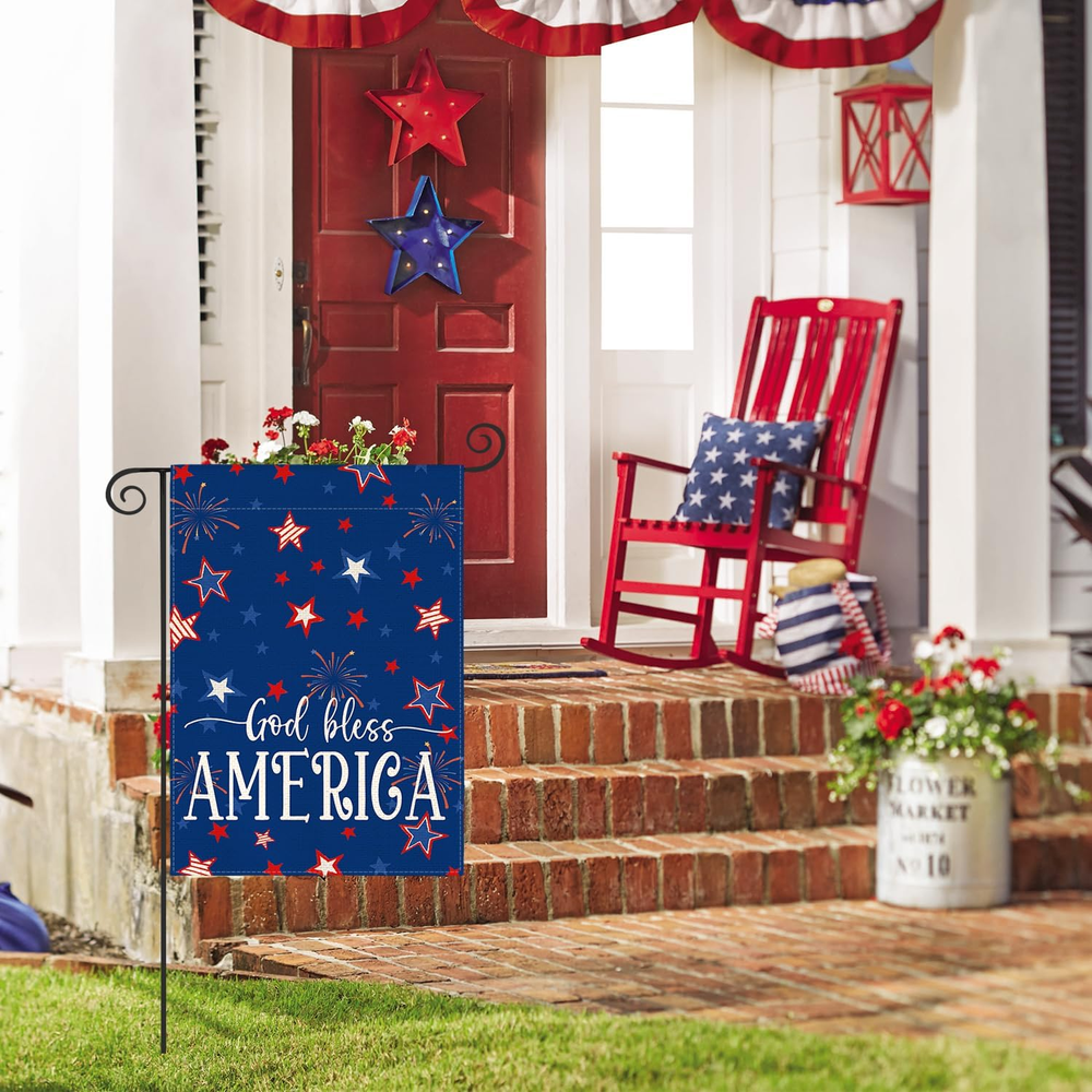 This patriotic garden flag is a fantastic way to show your American pride! The double-sided design looks vibrant, and the durable spun polyester holds up well outdoors. Perfect for 4th of July or year-round, it adds a festive touch to any yard. The stitching is strong, and the colors stay bright even after washing. A great buy for anyone who loves patriotic decor!
