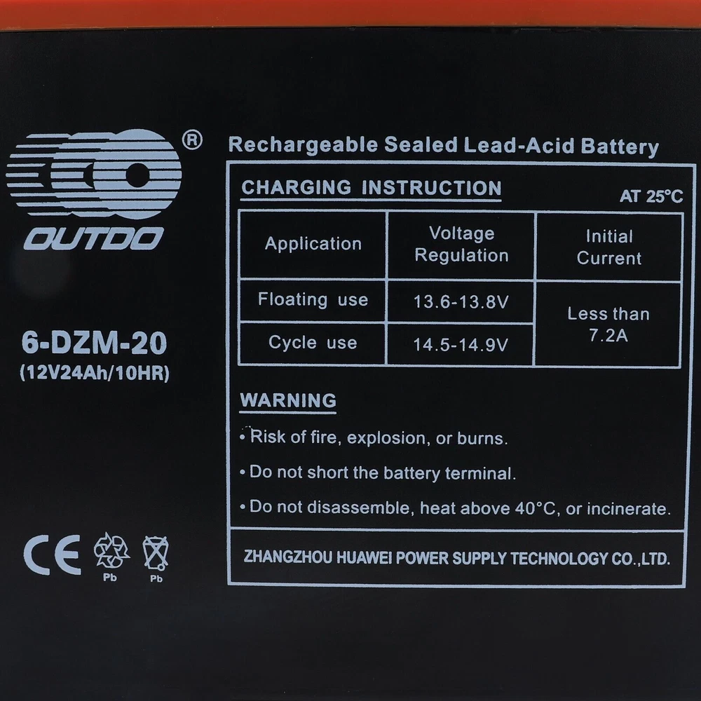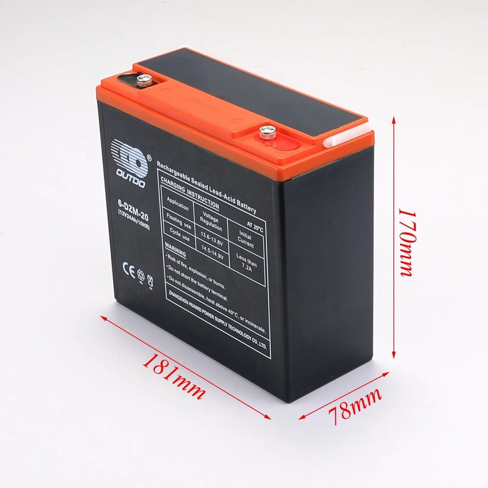 6-DZM-20 SLA is a 12V 24AH Sealed Lead Acid (SLA) rechargeable maintenance free battery Amperage: 24AH / Voltage: 12V Size: 7.1''(181mm) x 3"(78mm) x 6.7"(170mm) Maintenance Free Sealed battery will not dry out or spill Package include: 4 x Batteries