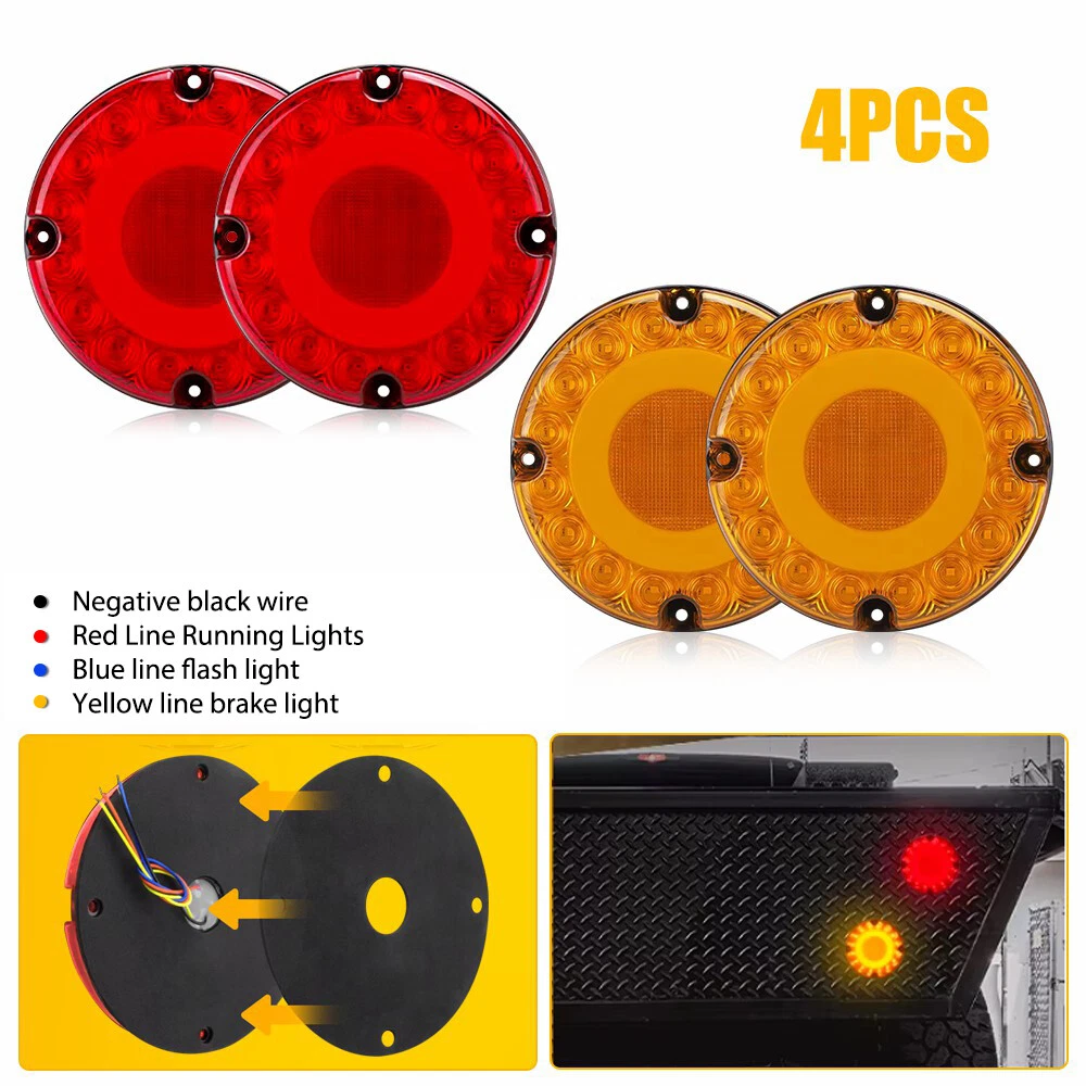 Fit for: Suitable for truck, trailers, semi truck, caravans, campers, buses, vans, lorry, car, rv, bulldozer, crane, etc Specifications: Product Material: ABS+PC Light Color: Red,Amber Voltage: 12-24V LED Quantity: 36/1pcs Size: 7inch round Functions: Brake light, tail light, turn signals, etc Wiring Mode: Black wire: Negative Red wire: Red light on the outer ring of running light Yellow wire: Red light in the inner circle of the brake light Blue wire: Flashing red light Waterproof Grade: IP67 Lifespan: 50,000h+ Features: *High Brightness 4x Red/Amber 7inch Round LED Trailer Truck Bus Tail Light Stop Turn Signal DRL M Fit for: Suitable for truck, trailers, semi truck, caravans, campers, buses, vans, lorry, car, rv, bulldozer, crane, etc Specifications: Product Material: ABS+PC Light Color: Red,Amber Voltage: 12-24V LED Quantity: 36/1pcs Size: 7inch round Functions: Brake light, tail light, turn signals, etc Wiring Mode: Black wire: Negative Red wire: Red light on the outer ring of running light Yellow wire: Red light in the inner circle of the brake light Blue wire: Flashing red light Waterproof Grade: IP67 Lifespan: 50,000h+ Features: *High Brightness Each LED tail light bright enough and energy-saving. *Superior Quality Made of high quality material to ensure its low energy consumption, good waterproof and shock resistance. *Waterproof: The tail light has IP67 waterproof rating, which works even under extreme conditions such as rain and snow. *Wide Application This pair of LED tail lights can be used in truck, trailers, semi truck, caravans, campers, buses, vans, lorry, car, RV, bulldozer, crane, etc. It also can be used as brake light, daytime running light, tail light, turn signal light, etc. *Warm Notice Please check the detail information of the product carefully before purchasing. Your satisfaction is our utmost concern, please feel free to contact us for any questions and concerns. Package Included: LED tail lights *4 (2x Amber +2x Red) ABOUT US 4x Red/Amber 7inch Round LED Trailer Truck Bus Tail Light Stop Turn Signal DRL M Fit for: Suitable for truck, trailers, semi truck, caravans, campers, buses, vans, lorry, car, rv, bulldozer, crane, etc Specifications: Product Material: ABS+PC Light Color: Red,Amber Voltage: 12-24V LED Quantity: 36/1pcs Size: 7inch round Functions: Brake light, tail light, turn signals, etc Wiring Mode: Black wire: Negative Red wire: Red light on the outer ring of running light Yellow wire: Red light in the inner circle of the brake light Blue wire: Flashing red light Waterproof Grade: IP67 Lifespan: 50,000h+ Features: *High Brightness Each LED tail light bright enough and energy-saving. *Superior Quality Made of high quality material to ensure its low energy consumption, good waterproof and shock resistance. *Waterproof: The tail light has IP67 waterproof rating, which works even under extreme conditions such as rain and snow. *Wide Application This pair of LED tail lights can be used in truck, trailers, semi truck, caravans, campers, buses, vans, lorry, car, RV, bulldozer, crane, etc. It also can be used as brake light, daytime running light, tail light, turn signal light, etc. *Warm Notice Please check the detail information of the product carefully before purchasing. Your satisfaction is our utmost concern, please feel free to contact us for any questions and concerns. Package Included: LED tail lights *4 (2x Amber +2x Red) FAQ Shipping Returns Contact Us Payment Why swith to LED? LEDs not only give your vehicle a clean, modern look but, with proper use, will outlast any halogen bulb and HID bulb! Low energy draw, high lumen output, and instant on/off LED technology out shines stock bulbs in every way. Which bulbs are used in my vehicle? Check Sylvania automotive lamp replacemnt guide , you can select the year, make, and model of your vehicle, then select the application you want to replace or upgrade from stock. What does CAN Bus mean? CAN Bus means Controller Area Network Bus. This system monitors your vehicle and reports operating conditions. CAN Bus systems are commonly found in European vehicles such as BMW, Audi, Mercedes, Volkswagen, Porsche, and in many American vehicles. While most late model American vehicles have CAN Bus systems, it is always good to check with your vehicle dealer to see which system your vehicle has before purchasing electrical products. When do you need Warning Canceller? Some vehicles with cmplex internal computers(such as Audi,BMW,Jaguar,Mercedes,etc.) might report on-dash errors or flickering on the headlights. The warning canceller fixes the dashboard warning and flickering effect. Bulb Out Dashboard Error: On some vehicles, the dashboard will report as if you have a headlight bulb missing or burnt. It does not affect the headlights functioning, but the light on-dash will be on. The warning canceller fixes the issue. Flickering Issue: This happens when your vehicle does not recognize the new headlights installed. When turning the headlights on, the vehicle's computer does not understand the signal back from the headlights hence thinking they are still off. This triggers the headlight flickering effect. The warning canceller solves this issue. LED Advantages: Very low and efficient energy consumption than halogen bulbs & HID Bulbs Compared with HID bulbs, LED bulbs Light up instantly, no warm up period Low voltage protection, high precision constant current driver chip Longer lifespan than HID and halogen bulbs Light can be controlled easily in color and intensity Easy to install a LED headlight conversion kit (1) We will ship your item(s) within 24 hours. (2) We ship this item to US only via USPS first class mail. It usually takes 3-6 working days to deliver. How Long Will It Take to Receive My Refund? If you have emailed us for a refund ,once we have approved it ,after 60 days your money will be refunded. The estimated time for the refund to appear in your account is based on the payment method you use. Paypal is the 