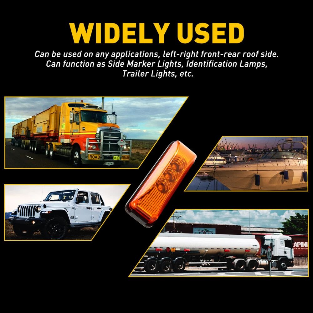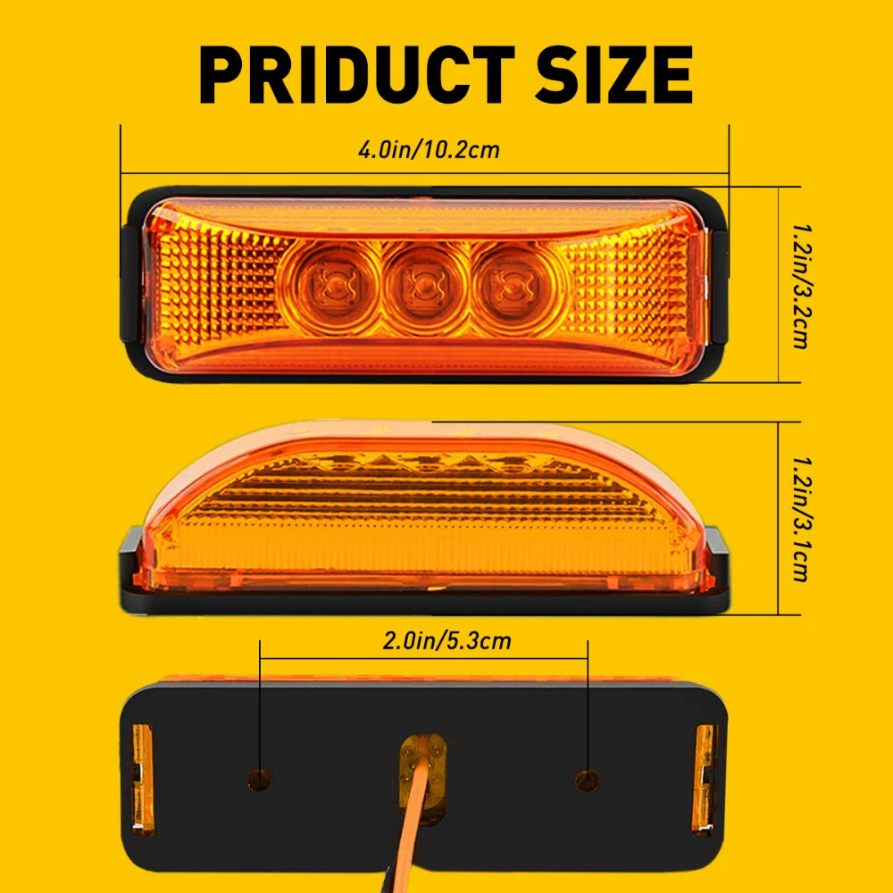 Specifications: Number of leds: Single 3LED Light shell color: Amber light Amber shell, yellow light yellow shell, white light transparent shell Mode: Black line negative, yellow line positive yellow light, red line positive red, white line positive white Suitable voltage: 10-30V wide voltage Waterproof rating: IP67 Service life: 50000+ hours Uses: Can be used as signal lights, taillights, running lights, etc., to improve driving safety Models used: trucks, trucks, various work vehicles, etc Features: 1. Good sealing, strong water resistance 2. Low energy consumption, high brightness, long service life Packaging include: 4x Amber 3LED Side Marker Light RV Trailer Truck Clearance Light Lamp Waterproof Specifications: Number of leds: Single 3LED Light shell color: Amber light Amber shell, yellow light yellow shell, white light transparent shell Mode: Black line negative, yellow line positive yellow light, red line positive red, white line positive white Suitable voltage: 10-30V wide voltage Waterproof rating: IP67 Service life: 50000+ hours Uses: Can be used as signal lights, taillights, running lights, etc., to improve driving safety Models used: trucks, trucks, various work vehicles, etc Features: 1. Good sealing, strong water resistance 2. Low energy consumption, high brightness, long service life Packaging include: Amber light *4 (2 screws per light) Item Specifics Brand Unbranded Light Color Yellow Fitment Type Performance/Custom Lamp beads type F3 lamp beads Lighting Technology LED Manufacturer Part Number Does Not Apply Material ABS++ PC lampshade Model MM 3LED Truck Side Light Placement on Vehicle Front Left Rear Right Shell Material Plastic To Fit Can be used as fender marker light, steering light Type Truck Trailer Clearance Light Voltage 12V Manufacturer Warranty 2 Years Payment Returns DESCRIPTION PAYMENT SHIPPING RETURN POLICY CONTACT US Shop Category Store Home LED Headlight ◈ H4 ◈ H13 LED Reverse Light ◈ T15/921/W16W LED License Plate Light LED Side Marker Light Car Parts & Accessories Tail Light assemblies Other Hot Item Picture New List Item 2010-2019 fit Toyota 4Runner Leather Center Console Lid Armrest Cover Dark Tan USD 10.92 Universal Pigtail Female Wire Socket 1157 U Two Harness Stop Brake Replace Fit USD 9.49 2pc Red/White 16LED 4"Inch Round Truck Stop Trailer Brake Turn Signal Tail Light USD 18.04 10pcs 12V Red Round LED Side Marker Lights Tail Warning for Truck Trailer Dump USD 11.39 48" inch Truck Tailgate LED Light Bar Brake Reverse Turn Signal Stop Tail Strip USD 19.94 Help & Info Payment Policy Shipping Policy Return Policy FAQ About Us 4x Amber 3LED Side Marker Light RV Trailer Truck Clearance Light Lamp Waterproof Specifications: Number of leds: Single 3LED Light shell color: Amber light Amber shell, yellow light yellow shell, white light transparent shell Mode: Black line negative, yellow line positive yellow light, red line positive red, white line positive white Suitable voltage: 10-30V wide voltage Waterproof rating: IP67 Service life: 50000+ hours Uses: Can be used as signal lights, taillights, running lights, etc., to improve driving safety Models used: trucks, trucks, various work vehicles, etc Features: 1. Good sealing, strong water resistance 2. Low energy consumption, high brightness, long service life Packaging include: Amber light *4 (2 screws per light) Payment Returns All rights reserved. On Dec 16, 2024 at 06:54:07 PST, seller added the following information: