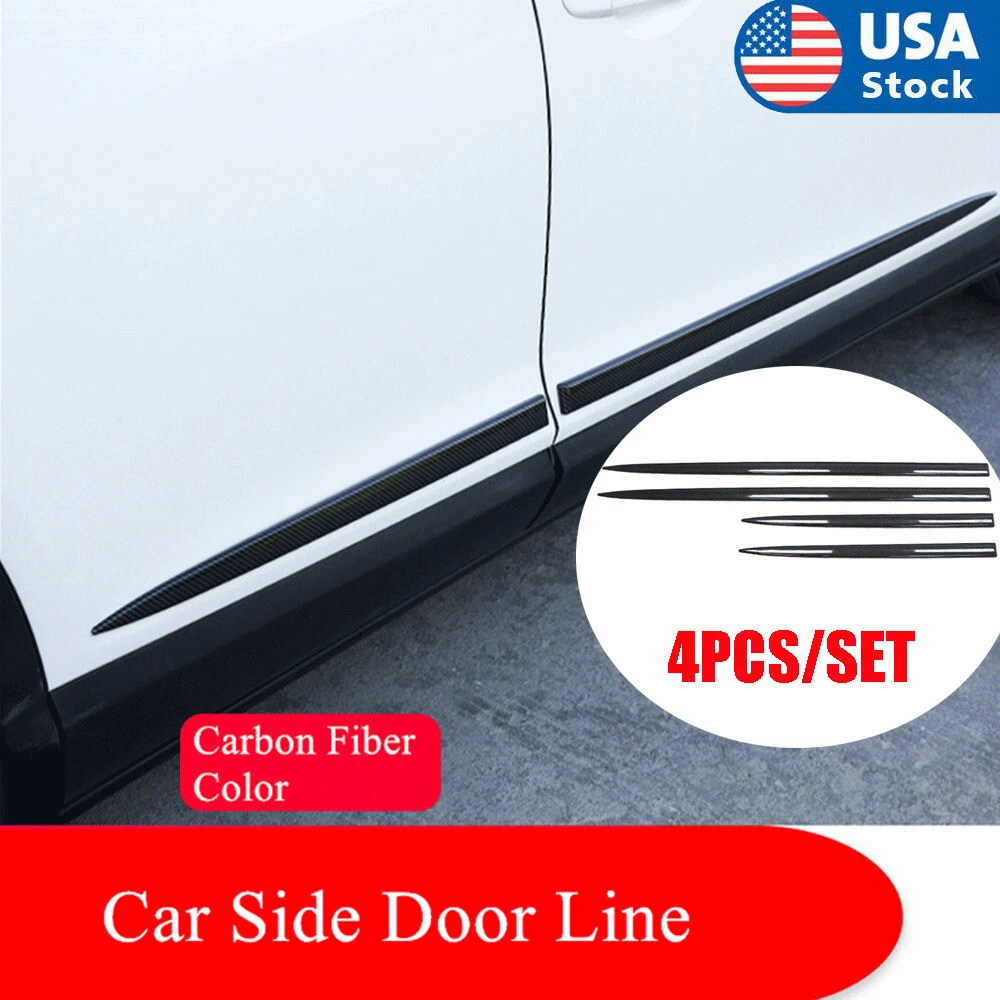 4x Carbon Fiber Look ABS Car Side Skirt Door Line Sill Garnish Body Molding Trim