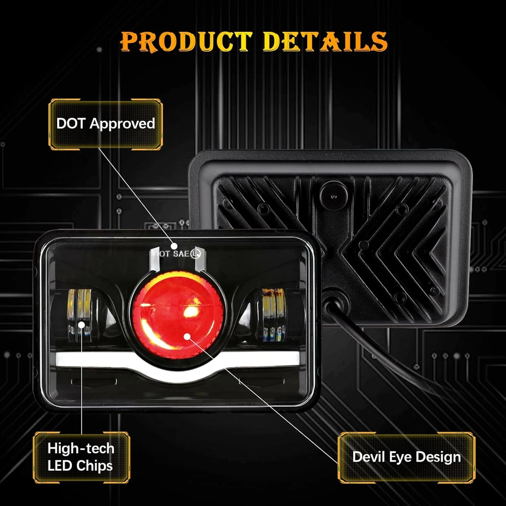 Package included: 4PC 4X6\'\' LED headlights Features: Manufactured by DOT approved and OEM approved and ISO certified manufacturers, made of materials that meet or exceed strict OEM requirements Highly recommend professional installation of vehicle accessories Suitable for most vehicles with sealed beam headlights Simple plug and play design Each piece is equipped with 15-LED sealed beam light and toughened PMMA lens with H4 plug Use high-quality black aluminum housing and PMMA lens Specifications: Size: 17 * 11 * 8 cm Light output: large beam 6000 lumens / low beam 3000 lumens per component Color temperature: 6000K-6500K White LED wattage: 60W/PC Working voltage: DC 9V to 32V Working current: 3A to 12V Waterporrf rate: IP 68 Average life span exceeds 80,000+ hours Plug: factory H4 plug with high beam/low beam/day driving Warranty:3Year Fitment: For Chevy Caprice 1977-1986 Camaro For Chevy C10 C20 S10 C5500 Kodiak For Chevrolet Camaro 1982 - 1992 For Chevrolet Cavalier 1982 - 1987 For Chevrolet El Camino 1982 - 1987 For Chevrolet Monte Carlo 1980 - 1988 For FREIGHTLINER FLD120 112 FLD For Peterbilt Rectangular Headlights 379 378 357 For Kenworth T800 T400 T600 W900B W900L Classic 120/132 HK Classic For Ford Mustang 1979 -1986