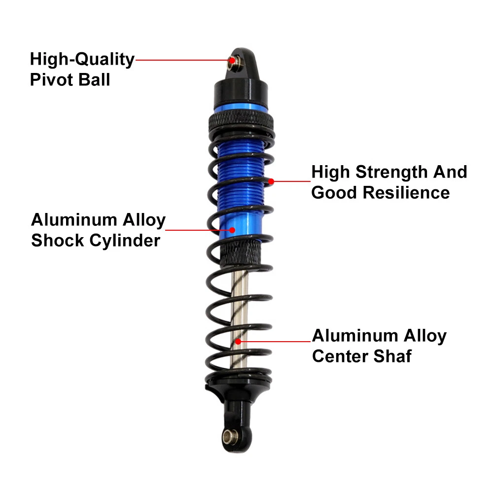 You may also like HobbyWing QuicRun 10BL60 60A Brushless ESC Sensored Sensorless for 1/10 RC Car 50.16 USD 61.93 USD Free shipping 19% off 12pcs M5 4.5mm Nuts CW CCW Self-Locking Lock Nuts for RC FPV Racing Drone Motor 9.12 USD 11.26 USD Free shipping 19% off Differential Central Driving Shaft Gear for WLtoys A949-B A959-B A969-B A979 20.44 USD 24.32 USD Free shipping 16% off 1/5/10Pair RC Bullet Connector 2/3/3.5/4.0/5/5.5/6/8mm Male Female Banana Plug 4.95 USD 6.11 USD Free shipping 19% off M1 8mm 13T-49T Pinion Motor Gear for 1/5 TRAXXAS ARRMA Outcast 8S Car Motor 7.61 USD 9.4 USD 4.0 USD 19% off EMAX Tinyhawk 3 FPV Racing Drone Part Goggles Propeller Transmitter Motor Camera 8.12 USD 10.03 USD 2.0 USD 19% off EMAX Avan Tinyhawk TH Turtlemode Propeller 2CW+2CCW 4-Blade 40mm For FlyingMotor 7.29 USD 9.0 USD Free shipping 19% off Digital Servo 9g 17g 25kg 30kg 70kg for 1/24 1/18 1/12 1/10 1/8 1/5 RC Car Boat 8.77 USD 10.83 USD Free shipping 19% off SpeedyBee F405 Flight Controller BLS 35A V2 3-6S ESC for RC FPV Racing Drone 39.78 USD 49.11 USD Free shipping 19% off 9imod Waterproof BLS-HV35MG 35KG Metal Gear HV Digital Servo for RC Car Boat DIY 44.88 USD 55.41 USD Free shipping 19% off Hobbywing Fusion SE 1/10 Brushless Motor and ESC 40A 2 in 1 1200KV 1800KV 2-3S 15.45 USD 19.07 USD Free shipping 19% off Original JJRC X17 Propellers X17-04 RC Drone Qaucopter Spare Parts Blades Set 8.53 USD 10.53 USD Free shipping 19% off ZOP Power 3S RC Lipo Battery 11.1V w/ XT30 XT60 T Plug JST Plug for RC Car Boat 12.95 USD 15.99 USD Free shipping 19% off 9IMOD XT60 Parallel Connector Male/Female Cable Y Splitter for RC Battery Motor 6.08 USD 7.51 USD Free shipping 19% off EMAX ECO II 2207 Motor 1700KV 1900KV 2400KV Brushless Motor for Racing RC Drone 20.29 USD 25.05 USD Free shipping 19% off Rocket-RC 2030 Sensored Brushless Motor 30A ESC for TRX4M Upgrades 1/18 RC Car 12.58 USD 15.53 USD Free shipping 19% off Lipo Guard Safety Bag Fireproof Explosion-Proof Portable for RC Battery 20.78 USD 25.66 USD Free shipping 19% off Rocket ESC Cooling Fan for TS120 TS160 Turbo ESC 1:10 1:8 1:12 RC Car Truck Auto 12.81 USD 15.81 USD Free shipping 19% off SKYRC T100 AC Lipo Battery Balance Charger Dual 5A 2X50W 2-4S RC Car Charger 79.77 USD 98.48 USD Free shipping 19% off RC Motor Pinion Gear Puller Tool Universal Pinion Gear Remover for RC Axial HSP 8.02 USD 9.9 USD Free shipping 19% off Emax Tinyhawk 3 III 15000KV Brushless Motor RC FPV Racing Drone Quadcopter Parts 15.5 USD 19.13 USD Free shipping 19% off Surpass Hobby 550 12T 14T 20T 25T 30T 35T Motor w/80A ESC for 1/10 1/12 RC Car 34.16 USD 42.17 USD Free shipping 19% off FOXEER FPV Antenna 5.8GHz 3dBi Omni Antenna RHCP SMA RP-SMA for RC Racing Drone 12.17 USD 15.02 USD Free shipping 19% off SURPASS HOBBY 550 Brushed Motor 12/21T 27T 35T & 60A ESC for 1/10 RC Racing Car 29.64 USD 36.59 USD Free shipping 19% off 9IMOD 4PCS Shock Absorber 119/134mm Front&Rear Metal Hydraulic Shock Absorber RC Car Upgrade Parts for Traxxas Slash 4x4 1:10 ARRMA 727 Mountain Mouse Features: 1. Made of quality aluminum alloy and plastic material, wear resistant, proof, high strength, and long service life. 2. Easy to install and remove, direct replacement of old or damaged one, quick height adjustment and ability to adjust preload. 3. Excellent shock absorption provides a balanced driving experience and reduces vibrations due to rough road conditions. 4. Independent spring design, which can ensure the shock absorption effect and improve the stability of the remote control car. 5. A high quality upgrade part to improve the appearance of your model car. 6. suit for Traxxas Slash4x4 Dead Mouse Short Card Metal Parts Shocks 727 Mountain Mouse,1:10 ARRMA Shengtang Boulder Granite Voltax Little Typhoon. Description: The package contains 4pcs hydraulic shock absorber. Reasonable design makes it easy to install and disassemble,This RC Shock absorber are the best spare choice for your rc cars. it is a replacement parts for damaged or old. Specifications: Name: Shock Absorber Material: Aluminum Optional Color: Red/Blue Quantity: 4Pcs Front Total Length: 119mm Rear Total Length: 134mm Front Hole Center to Hole Center: 109mm Rear Hole Center to Hole Center: 124mm Hole diameter: M3 Package contents: 2 *Front Shock Absorber 2 *Rear Shock Absorber Note: Only the above package content, other products are not included. 1.Due to the difference between different monitors,the picture may not reflect the actual color of the item. We guarantee the style is the same as shown in the pictures. 2.Due to the manual measurement and different measurement methods, please allow 1-3mm deviation.Thanks! Before purchase: 1.All the goods are ready stock, we will arrange the shipment at once if we receive the order. 2.Please read the item description, if you have any question, do not hesitate to contact us. 3.No warranty,if you receive a defect item,please contact us at once with item picture. 4.Use the vouchers for more saving. After purchase: 1.If you are satisfied,please express your use feeling. 2.Please contact us before you are going to give us bad review. We are helpful and will solve the problems. If you receive a defect item,please contact us at once with item picture or video.