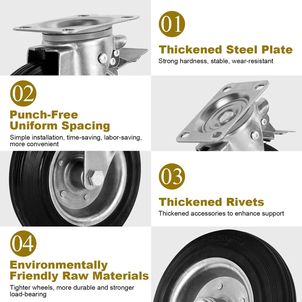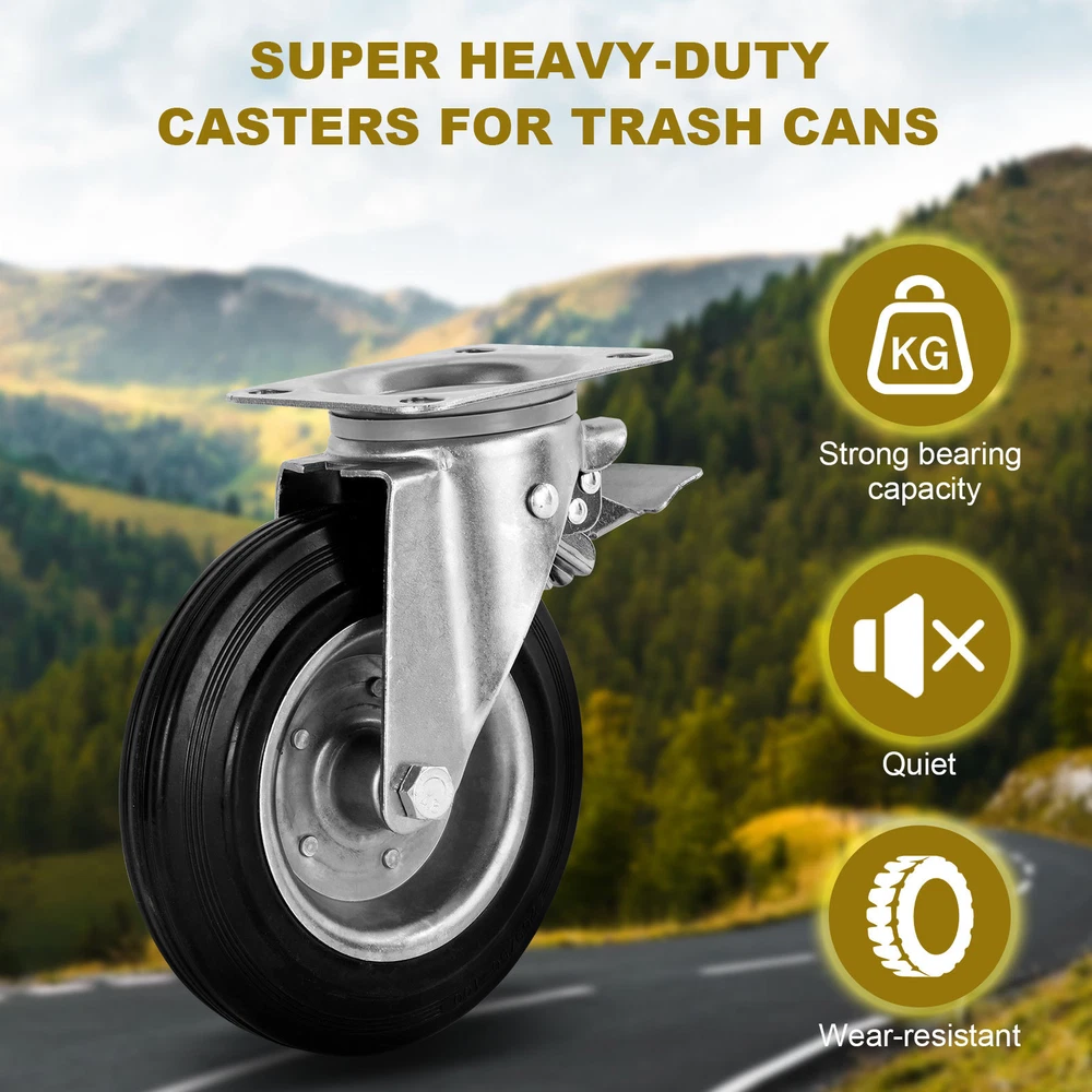 4x Heavy Duty 8 Inch Swivel Caster Wheelfor Cabinet Trash Can Load 617LB W/glove