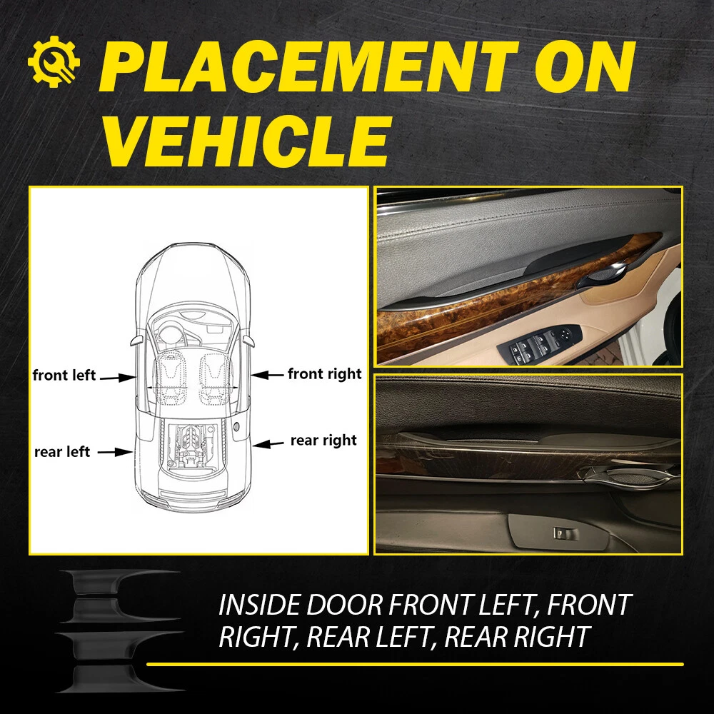 4x Car Door Interior Inner Handle Pull Carrier Cover For BMW 7 F01 F02 2008-2015 Fit for: BMW 7' F01/F02 2008-2015 ✨✨Note✨✨ Automotive parts requirements may vary for different vehicle models. Before making a purchase, carefully check your vehicle's model, year, and configuration to ensure that the selected product is fully compatible with your car. If you have any questions, feel free to contact our customer service team at any time. We will assist you in making an accurate selection. Specifications OE Numbers: 51419115501, 51419115502, 51429151211, 51429151212 Product Material: ABS 4x Inner Door Pull Handle Trim For 11-15 BMW 740i 740Li 750i 750Li 760Li F01 4x Car Door Interior Inner Handle Pull Carrier Cover For BMW 7 F01 F02 2008-2015 Fit for: BMW 7' F01/F02 2008-2015 ✨✨Note ✨✨ Automotive parts requirements may vary for different vehicle models. Before making a purchase, carefully check your vehicle's model, year, and configuration to ensure that the selected product is fully compatible with your car. If you have any questions, feel free to contact our customer service team at any time. We will assist you in making an accurate selection. Specifications OE Numbers: 51419115501, 51419115502, 51429151211, 51429151212 Product Material: ABS Color: Black (as pictures show) Placement on Vehicle: Front left, front right, rear left, rear right Features: *Perfect Fitment Comply with the industrial standards, use it with confidence. *Strict Quality Control All of our handles undergo strict quality control not just before shipping but throughout the production process. *Durable Material Mainly made of high-quality material to ensure the long service life and durability. *Simple Installation Easy installation with direct replacement, other modifications are not required. *Warm Notice Please double-check the part number and models in the description to guarantee it fits your vehicle before ordering. Packaging Include: 4x Door Pull Handle Cover ✨✨ Quality and After-Sales Service ✨✨ 1. Quality Assurance: We are committed to providing you with high-quality auto parts products. If you find any quality problems during use, please contact us in time and we will serve you wholeheartedly. 2. Worry-Free After-Sales: We attach great importance to your shopping experience. If you have any after-sales needs, we will respond quickly and do our best to solve your problems. Please feel free to purchase and use our products. Item Specifics Brand AUXITO Interchange Part Number 51419115501 51419115502 OE/OEM Part Number 51419115501, 51419115502, 51429151211, 51429151212 Manufacturer Warranty 3 Years Color Black Manufacturer Part Number MFS-F01-08-15B Material ABS Superseded Part Number 51419115501 51419115502 Country/Region of Manufacture China Placement on Vehicle Front left, front right, rear left, rear right Packaging Include 4x Door Pull Handle Cover OE Numbers 51419115501, 51419115502, 51429151211, 51429151212 Other Part Number 51419115501, 51419115502, 51429151211, 51429151212 Fitment FOR BMW 7' F01/F02 2008-2015 Universal Fitment No Performance Part No Vintage Car Part No Size As Photo Show Return Policy 60 Days Free Return Fitment Type Direct Replacement Number of Pieces 4 FAQ ♥ If you have a decoding problem or any other problems, please contact us first, we will help you with it. We will reply you within 24 hours in working days. I'm a new seller, thanks a lot for your trust and convince! I will serve you with all my heart. ♥ Q1: Will this bulb fit my vehicle? A: We can match almost any vehicle to one of our bulb sizes. eBay only lets us include some vehicle fitments per listing, but if your vehicle does not show up on the compatibility table at the top of our listings, welcome you to contact us for free consulation before purchasing a product. Q2: My item has not arrived, what's taking so long? A: Sometimes items take longer than expected, especially if it’s going far or to rural area. Check with your post office to see if your item has been held up. Sometimes Royal Mail will not update a tracking number until it has arrived at its destination. If your item still don't arrive after a few days, let us know so we can double check for you and help solve it asap. Q3: My bulbs won't fit, help! A: Special bulb holder may be required. See if you can take the holder from the stock bulb. If not, let us know. The bulb size may be wrong, double check the item you received with the item you ordered. Do you have an aftermarket lighting housing? These may not be perfectly fitted for aftermarket bulbs and will require some manual modifications. Q4: Neither side lighting up? Both sides flicker, hyper flash, or work inconsistantly. A:Check the light fuses, and then check the ballast plugs to insure correct installation. If this doesn't work, there may be a voltage problem with the vehicle. You probably just need a relay or capacitor. Even though some bulbs are builtin resistors, they may still need a decoder. Pay & Ship (1). We gladly accepts payment via PayPal, We will ship your item(s) within 24 hours. (2). Before payment, please keep the consistency of Paypal address and ebay address. (3). Quantity orders are welcome! Returns (1). We offer 60 days free return policy. Please contact us within 60 days from the date you receive your order if you have any issues with the product or want return. Refund will be send after we got your resend package. (2). All returned items should be in the original packaging , return tracking information should be provided . Contact Us (1).Negative feedback will not help resolve any problems you have, please contact us via eBay messages before leaving negative feedback , our customer service will make best effort to help you with the issues. (2).We maintain high standards of excellenceand strive for 100% customer satisfaction! Feedback is very important to us. We request that you contact us immediately before you give us neutral or negative feedback, so that we