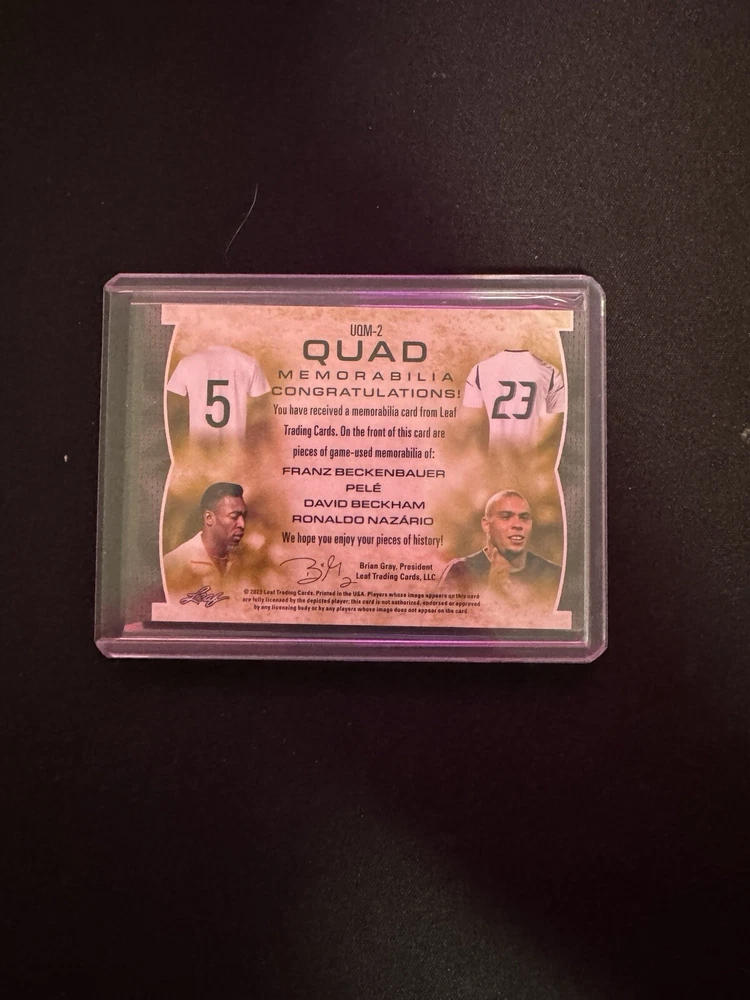 Signed By:PeléTeam:BrazilManufacturer:LeafOriginal/Licensed Reprint:OriginalType:Sports Trading CardSport:SoccerPlayer/Athlete:Pelé, RonaldoLeague:UEFA Champions LeagueCard Size:Standard