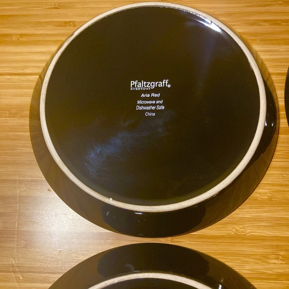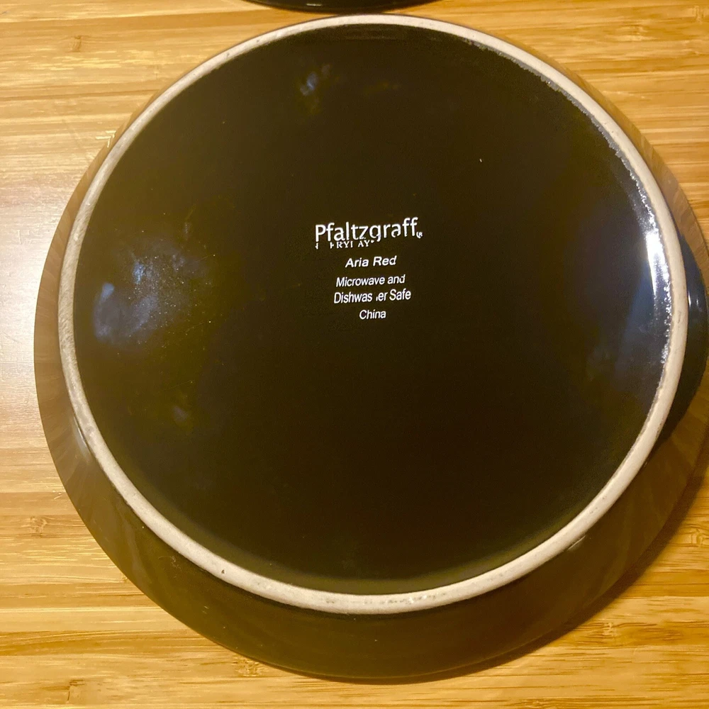 Production Technique: Pottery Number of Items in Set: Four-Piece Product Line: Pfaltzgraff Studio Theme: Salad Plate Set Color: Multicolor Features: Dishwasher Safe, Microwave Safe Shape: Round Set Includes: Plate Set Country/Region of Manufacture: China Material: Stoneware Type: Salad Plate Occasion: All Occasions Pattern: Aria Red Brand: Pfaltzgraff Plate Diameter: 8" Finish: Glossy Style: Contemporary Backstamp: Printed
