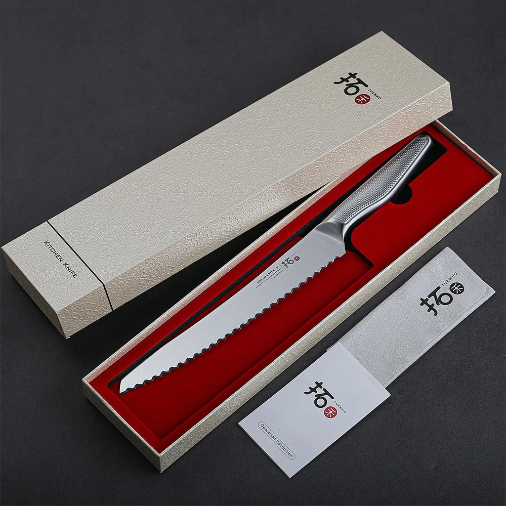 Products information: SUPERB RAW MATERIAL: The blade uses Germany 1.4116 stainless steel. This Kitchen Knife is made of high-quality German stainless steel that engineered to perfection at 56±2 Rockwell hardness for long lasting performance, rust and stain resistant. SUITABLE KNIFE HANDLE: Ergonomic handle is perfectly bonded to full tang. The handle is anti-skid with the design of concave and convex. SHARPER BLADE: The blade is sharper and keeps sharper longer. Edge sharpened to 15°per side, it maintains the perfect balance between blade sharpness and maximum resilience. The knife can be more quick to cut stuff and then save your time. DAMASCUS KNIVES 4x TURWHO Kitchen Cook Knife Set German Steel Santoku Bread Slicer Knife Block Set Products information: SUPERB RAW MATERIAL: The blade uses Germany 1.4116 stainless steel. This Kitchen Knife is made of high-quality German stainless steel that engineered to perfection at 56±2 Rockwell hardness for long lasting performance, rust and stain resistant. SUITABLE KNIFE HANDLE: Ergonomic handle is perfectly bonded to full tang. The handle is anti-skid with the design of concave and convex. SHARPER BLADE: The blade is sharper and keeps sharper longer. Edge sharpened to 15°per side, it maintains the perfect balance between blade sharpness and maximum resilience. The knife can be more quick to cut stuff and then save your time. TURWHO Trust: We promise a superior product that will give you a lifetime of exemplary service. Try it risk free. We know you'll love it. Specification: Brand: TURWHO Handness:56HRC Blade Material:German 1.4116 Stainless Steel Handle Material: Stainless Steel Handle & Ebony Handle Thickness:2.0mm and 3.0mm Angle of The Edge:15° Per Side Knife Net Weight: 7in Sanotku Knife(187g); 9in Bread Knife(184g); 9in Slicing Knife(180g) Package included: 1x TURWHO 9-inch Bread knife 1x TURWHO 9-inch Slicing knife 1x TURWHO 7-inch Santoku Knife 1x TURWHO 33x23cm Ash wood & Magnetic Knife Block 3x Premium Gift Box 3x Operation Instructions Item Specifics Brand TURWHO Set Includes Knife Set Type Knife Set Food Compatibility Universal Material German Steel Cutting edge 15 degrees Handness 56HRC Making Method Hot Air Blade Edge Straight Handle Material 304 Stainless Steel Color Silver Number of Items in Set 4 Custom Bundle Yes Manufacturer Warranty Lifetime Bundle Description 3x Knife & 1x Knife Block in Gift Box Room Kitchen Blade Length 7in,9in, 9in Features Easy Clean, Well Balance, With Gift Box Payment All purchases will go through eBay secured checkout to ensure that your order is processed without any delays. After you have made your purchase you can either click on 'Pay now' or follow the instructions in an automated email that you will receive shortly after your purchase. During the checkout, you can make an immediate payment by PayPal account, MasterCard, Visa or select an alternative method of payment, and receive the necessary payment details. Please note: If you have already marked payment as sent But actually not paid, then you MUST mark as payment not sent otherwise the PAY NOW button will not be available. Shipping 1.all orders will be Dispatched within 2 working days after payment. 2.orders are not processed on weekends or public holidays. 3.usually takes 3-6 business days to most US destinations. 4.Your patience would be much appreciated. 5.all items will be checked carefully and packaging well before send out. 6.All orders are including the tracking number. Any questions, please feel free to contact us. Returns Refund or replacement request is available only the requests within 60 days after parcel received & return the item as the same condition as received. Please contact us to request a return authorization. Your name, auction number, and reason for return should be included in the email. All items returned must contain all original packaging materials. Please repack the item carefully. Item returned will be tested and a new replacement will be shipped to the buyer immediately when found defective. In the event that a suitable replacement is not available then a refund will be issued. If the item is found non-defective and buyer just don't like it, we will still make you a full refund, but the return shipping fee at buyer's expense. All item return must have a RMA number, Please contact us to request a return detail address and the RMA number, this can help us identify return items accurate. Buyer is responsible for additional shipping costs for items that are returned refused or undeliverable. We do not accept any returns without an authorization number on the box or label it is being returned in. Contact Us We care about our valued buyers, if you have any questions, our Customer Service will be very glad to help you. For more information, please contact us through ebay message system. All questions would be answered within 48 hours. DAMASCUS KNIVES DESCRIPTION PAYMENT SHIPPING RETURN POLICY CONTACT US Shop Category Store Home Damascus Steel Kitchen Knife Hot Item TURWHO 9inch Slicing Knife Slicer German Stainless Steel Kitchen Carving Knives USD 29.99 TURWHO 8inch Slicing Knife Chef Kitchen Cook Meat Vegetable Carving Slicer Knife USD 24.99 TURWHO 6.5inch Boning Knife Japanese VG10 Damascus Steel Kitchen Cooking Knives USD 58.85 TURWHO 8in Chef Knife Japan VG10 Damascus Steel Kitchen Knife Black Resin Handle USD 68.80 TURWHO 3.5inch Paring Knife Japan VG10 Damascus Steel Bird's Beak Peeling Knives USD 38.80 New List Item 7x TURWHO Kitchen Knife Set Japanese VG10 Damascus Steel Chef Cook Slicing Knife USD 345.00 7Pcs TURWHO Kitchen Knife Set Japan VG10 Damascus Steel Chef Bread Slicing Knife USD 335.00 TURWHO 8.2inch Chef Knife 67-Layer Japanese VG10 Damascus Steel Kitchen Knives USD 68.80 TURWHO 8in Slicing Knife Carving Knife Japanese VG10 Damascus Steel Resin Handle USD 59.80 2x TURWHO Chef Knife Kitchen Slicing Carving Knife Japanese VG10 Damascus Steel USD 128.70 Delivery Help & Info Payment Policy Shipping Po