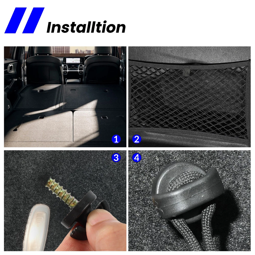 4x Universal Rear Trunk Cargo Envelope Net Tie Down Hook Hanging Clips Screws &