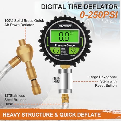 4x4 Digital Tire Deflator kit,Professional Tire Pressure Gauge 250PSI, Rapid