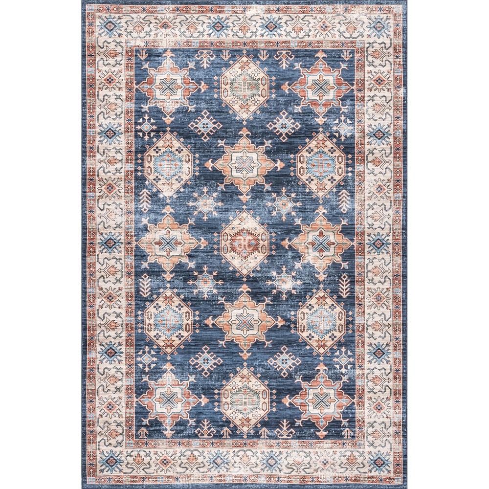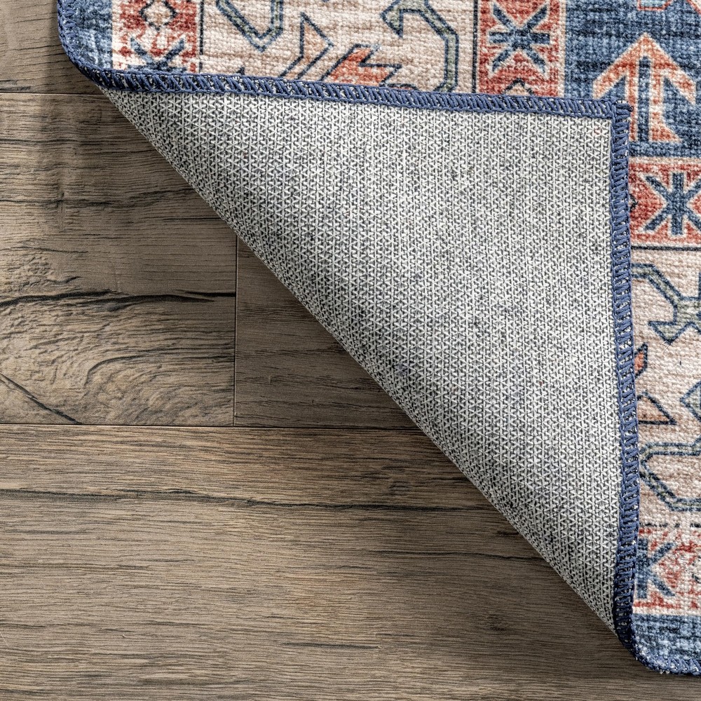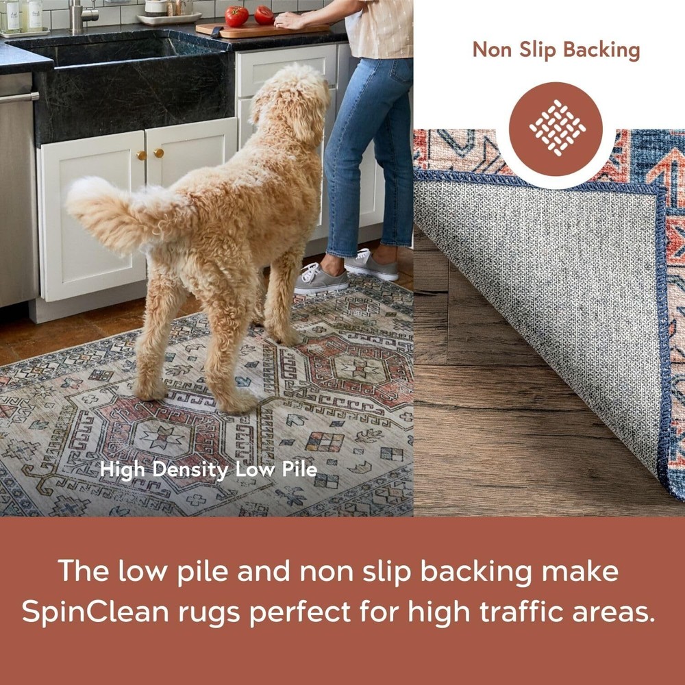 At , we believe that floor coverings and art should not be mutually exclusive. Founded with a desire to break the rules of what is expected from an area rug, was created to fill the void between brilliant design and affordability., The images we display have the most accurate colors possible.Rug Colors, sizes, patterns may vary slightly depending on how your rug is made and the size ordered.Due to different monitor resolutions and lighting you may notice a slight difference in color. Each handmade rug is unique to the artisan who weaved it.These are not considered defects Bunching, Creases and Folded Corners: You may see some creases and bunching in the pile and around the corners when you unroll your new rug. These waves will flatten within 2 -3 weeks as you begin to use your new rug. Use these tricks to help flatten your rug: Back Rolling: Roll the carpet out, then roll it back up reversely with the backside up. Let it sit rolled up reversely for a day or 2, or until it flattens out. Heavy Objects: Lay a piece of heavy furniture or objects on affected areas for a day or 2, or until it flattens out. If the corners are sticking up, curl them back and place heavy objects on affected areas going the opposite way. Heat: Use this technique as a last resort only. Place the rug over a cleared concrete or area like a driveway or sidewalk setting during dry sunny conditions. Allow the rug to be positioned for optimal sunlight as long as possible to give the rug time to absorb the sun's heat for up to 2 hours, but use more time if needed. Blow Dryer: If a large concrete patch with optimal sunlight is not accessible, flip the rug over and use a hair dryer to affected areas to heat up the creases. Always hold the hair dryer 7 to 12 inches away from the rug going side to side on a medium setting, as heat can sometimes cause backing to melt. Stylish and Practical: The SpinClean Machine Washable Collection offers an affordable, low-maintenance solution without compromising on style. This collection features a wide array of designs, from vintage to southwestern, boho, abstract, and modern geometric. Machine Washable for Easy Care: Maintaining this rug is a breeze with regular vacuuming and spot cleaning to preserve its beauty. For tougher stains, just toss your rug in the washing machine on a gentle cycle with cold water. We recommend line drying or using the air-only drying cycle without heat. Designed for Every Room: This area rug is kid and pet-friendly, making it ideal for any space in your home that needs an elevated touch. It ensures lasting style in your living room, bedroom, dining room, kitchen, bathroom, home office, dorm room, as a hall runner or entrance rug. Sleek and Functional Pile Height: The low pile of this area rug brings a sleek, sophisticated touch while being easy to clean and maintain. Designed to be placed conveniently under furniture and doorways or as an indoor entrance rug, this is the perfect high traffic rug for your home. Stain-Resistant Material: Our machine washable rugs are crafted from synthetic materials that are stain-resistant, lightweight, and easy to clean. The stain-resistant properties ensure that the rug maintains its vibrant colors and patterns, even after enduring the demands of everyday use. If your rug is located in an area that receives direct sunlight, regularly rotate your rug to maintain its appearance. Durable Design with Non-Slip Backing: This rug’s power-loomed design is made to endure everyday wear and tear, ensuring long-lasting durability. The integrated non-slip backing keeps the rug securely in place while the reinforced, quality-stitched edges enhance its resilience. For added comfort, pair it with of our rug pads for an extra cushioned feel underfoot.