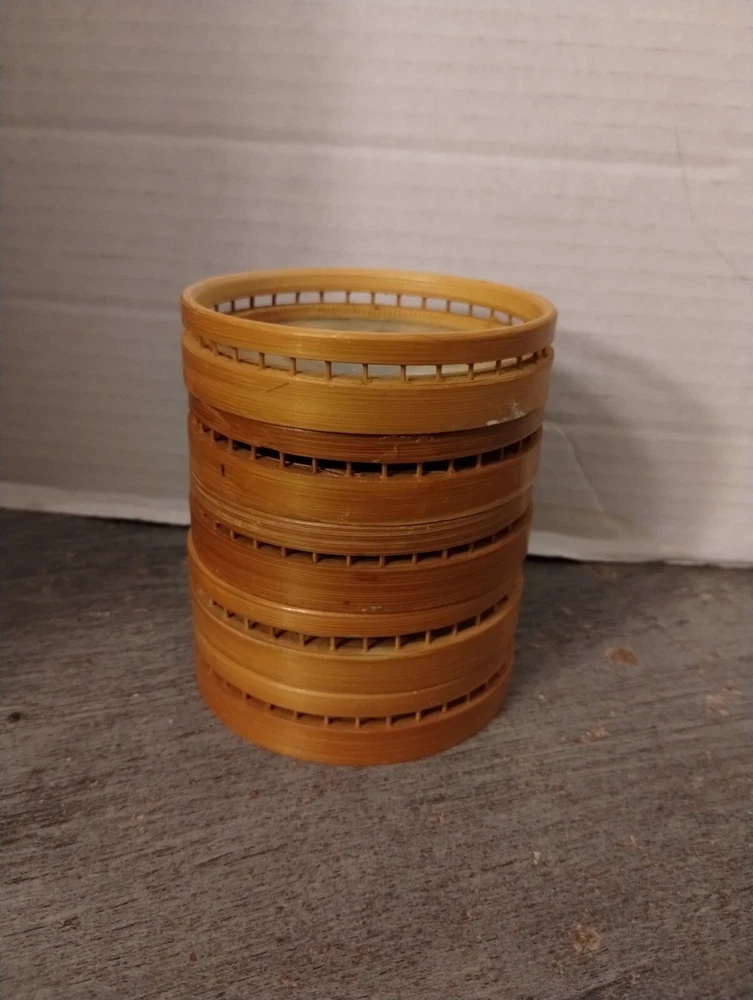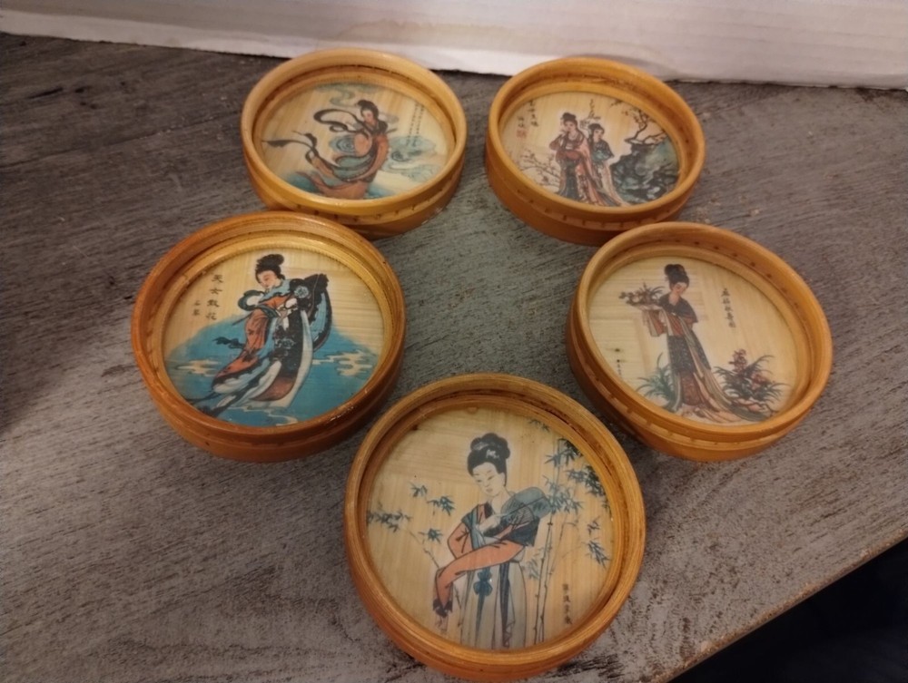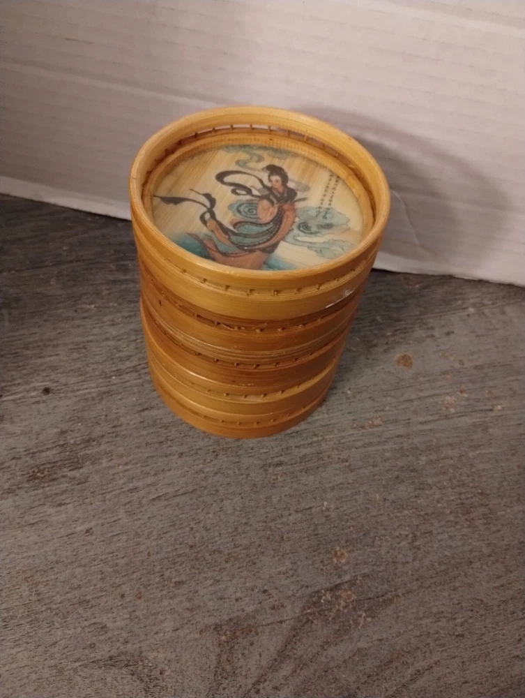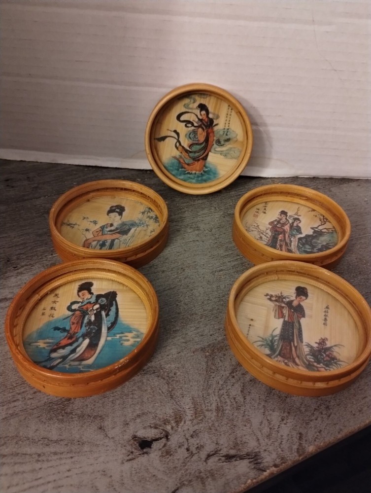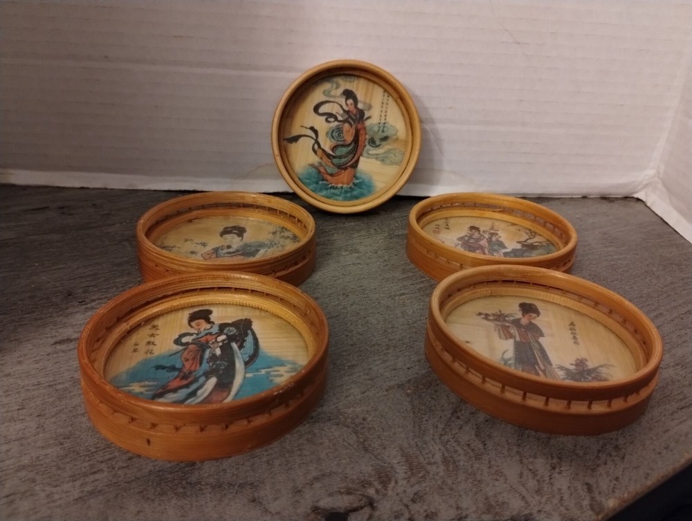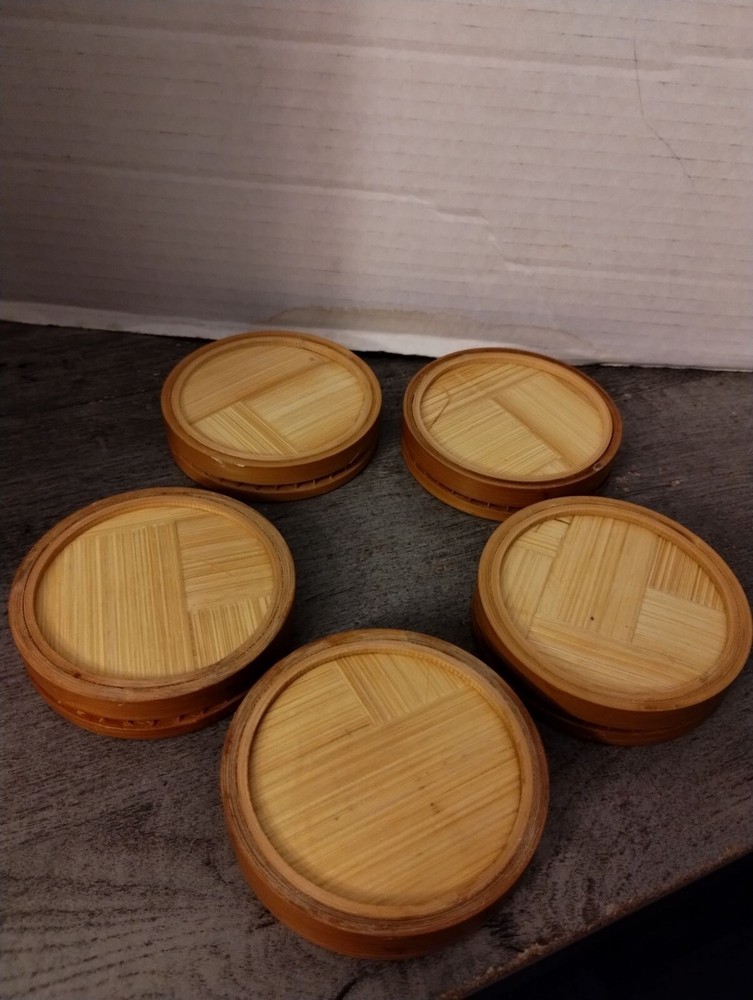 5 Asian Bamboo Coasters 3 1/4" Diameter Condition: Pre-Owned