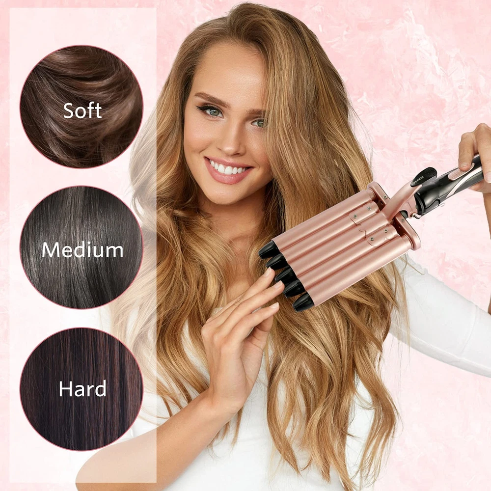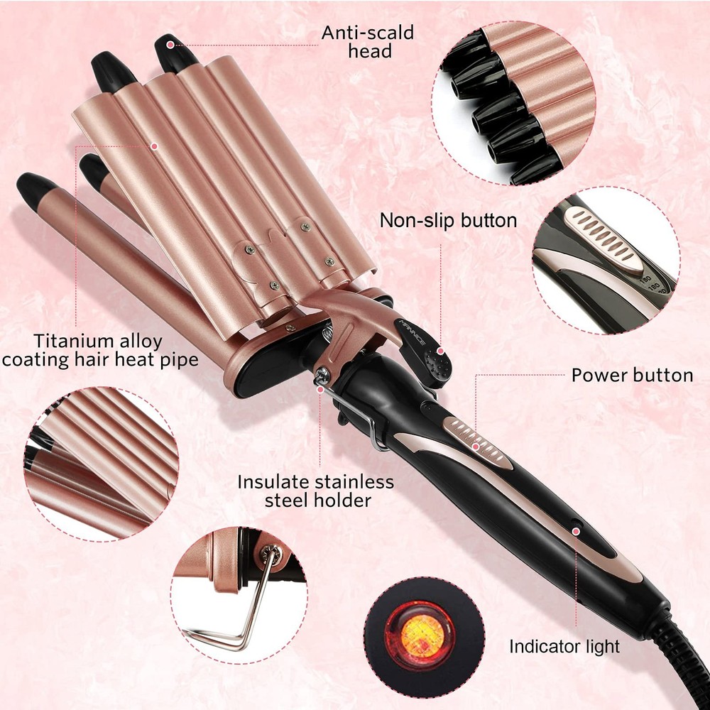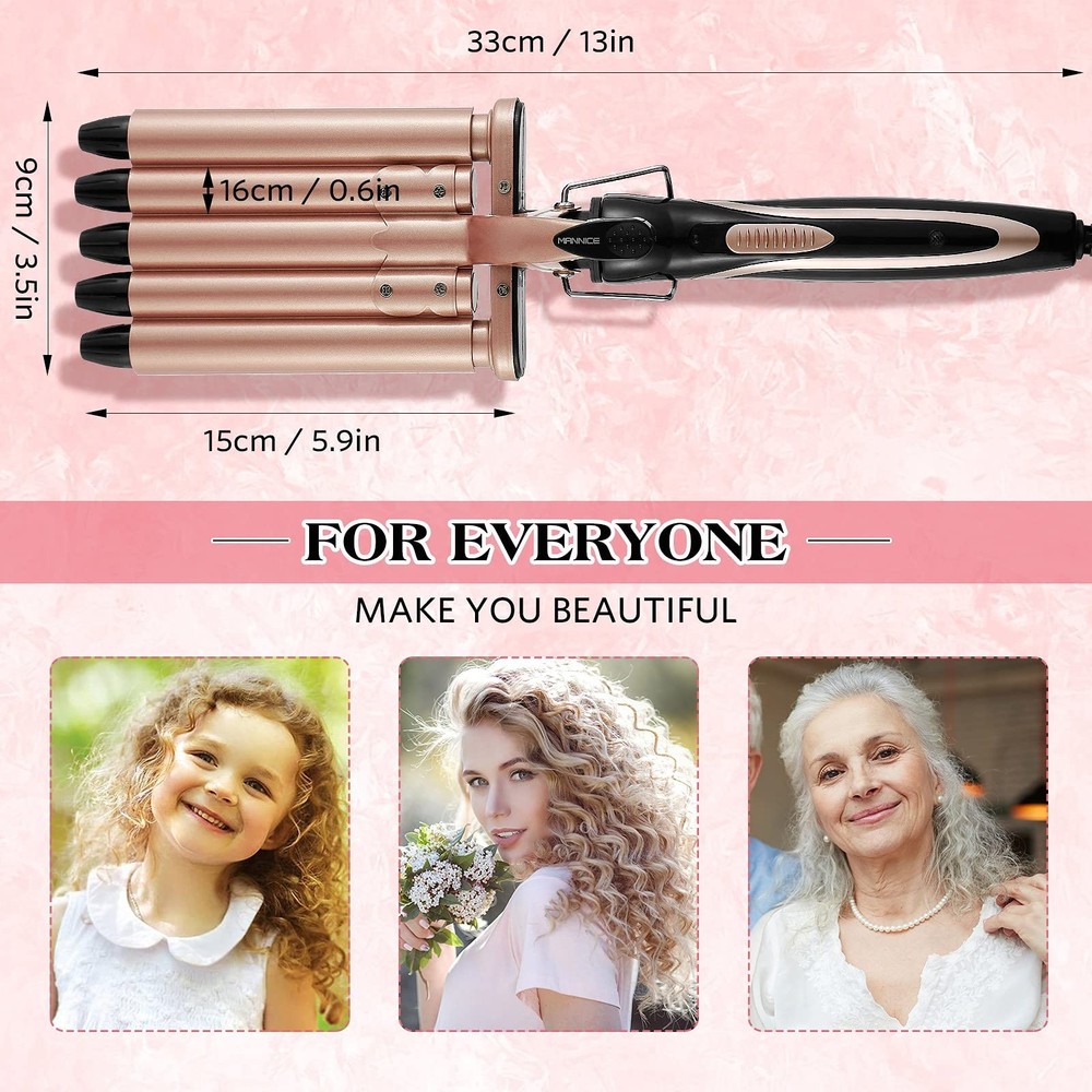 5 Barrel Curling Iron Wand, 0.6 Inch (16mm) Hair Waver Ceramic Tourmaline Wavy Tool with Dual Voltage Product Details Color: Gold Size: 0.6 Inch Brand: Mojonnie MPN: 5G16G EAN: 8075975309863 UPC: Does not apply Product Benefits: Creates long-lasting, natural-looking waves in various hair types Shape: Mermaid Brand: Mojonnie Hair Type: All, Wavy, Dry Material: Ceramic Product Dimensions ‏ : ‎ 14.17 x 3.94 x 0.01 inches; 14.4 ounces Date First Available ‏ : ‎ April 9, 2021 Manufacturer ‏ : ‎ Mojonnie Country of Origin ‏ : ‎ China Best Sellers Rank: #241,878 in Beauty & Personal Care (See Top 100 in Beauty & Personal Care) #491 in Hair Curling Wands #491 in Hair Curling Wands Customer Reviews: 4.2 4.2 out of 5 stars 95 ratings Crimper Hair IronThis hair crimper is a great waver curling iron help you make natural, elegant looking curls, it will last all day. The diameter of this hair crimper is 0.6inch/16mm, could create mermaid hair waver. Friendly DesignMade of high-grade ceramic barrels coated, harmless to your hair, keep your hair smooth, shiny all day. The handle is non-slip silicone for easy and convenient use. A best gift for your friends, girlfriend, wife and mother. Instant HeatThis hair waver iron goes from 180C to 210C / 356F- 410F, it can heats up to 410F(210C) in just 60 seconds. Easily adjust the temperature to suit your hair type. Great for curling professional hair wave, negative ion for hair care. Curling Made EasyThis hair crimper for women with temperature adjustable for all type hair, 360 degree rotatable and tangle-free cord ( 6.56 ft ), non-slip handle, and insulated barrel tips to provide added safety. Works On All Hair Types Suitable for short or long, thick or thin hair, this hair waver iron works great. The hair curler produces negative ions that create soft, shiny waves without any frizz. 30 days money back and 1 year free replacement guarantee.