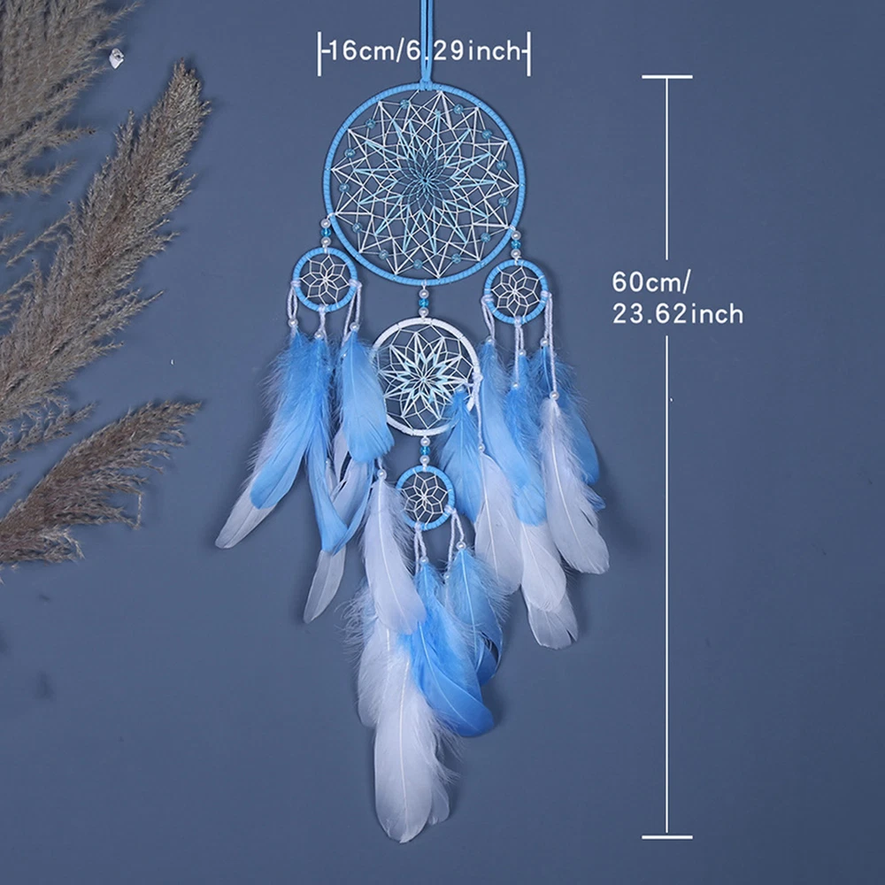 5 Circles Large Dream Catchers Feather Boho Wall Hanging Decor Dream Catcher Serene Sleep Enhancer: Each dream catcher, adorned with light and soft feathers, ensures a peaceful ambiance, fostering deeper and more restful sleep. Enhanced Longevity: Immerse yourself in the unparalleled beauty of this Dream Catcher made with high-quality materials and a classic iron ring design, offering a stable structure and artistic charm that is perfect for long-term use. Fine Craftsmanship: Our Dream Catchers are a witness to the skill and dedication of our skilled artisans, who meticulously weave each piece by hand. The intricate design and cultural significance make it a perfect addition to any room or space. Versatile Uses: Elevate your space with our Dream Catchers that effortlessly combine spirituality and style, a perfect harmony for your living room, study, bedroom, car, and more. Experience inner peace and serenity in every corner of your home. Heartwarming Present: Ideal for presenting to family and friends, this Dream Catcher symbolizes love and care, making festivals and birthdays memorable. Our Large Dream Catchers is a handcrafted artwork that brings artistic beauty to any room. Made with selected natural feathers that add an eye-catching decoration. This stable structure conveys good wishes and is a perfect gift for anyone who loves a car and dreams. A must-have decoration for your loved persons. Specification: Product name: Dream Catchers Product material: Iron ring, feather Product weight: 95g Product size: about 60x16x2cm/23.62x6.3x0.79 inches Product List: 1 * Dream Catchers Notes: Due to different lighting and screen settings, the product color may be slightly different from the picture. Due to the difference in manual measurement, please allow a 1-3cm difference in size. 1.You can make a Credit payment via Paypal.Paypal will let you use MasterCard,Visa to pay. 2.Payment should be completed within 5 days after auction closed, or unpaid dispute will be filed for an closing auction.An unpaid case will be filled after 4 days. ● We strive for 100% customer satisfaction ! ● Positive Feedback is very important to us. ● We hope that you contact us immediately BEFORE you give us neutral or negative feedback, so that we can satisfactorily address your concerns. ● We promise to offer the lowest price and high quality produce. Dear buyers : ● Welcome to my store ! ● Your satisfaction is our top goal,we appreciate your patronizing. ● If you have any questions, please contact us before leave negative or neutral feedback, we will try our best to solve the issue to your satisfaction, thanks ! ● If you are satisfied with our service, please rate the details of the transaction (Detailed Seller Ratings) on eBay. ● Please always talk to us via ebay Message. ● We appreciate your business and look forward to growing our e-Bay sales with satisfied customers.