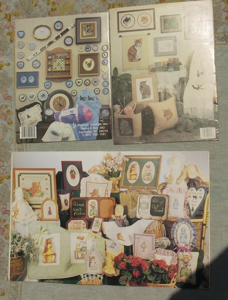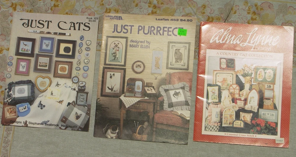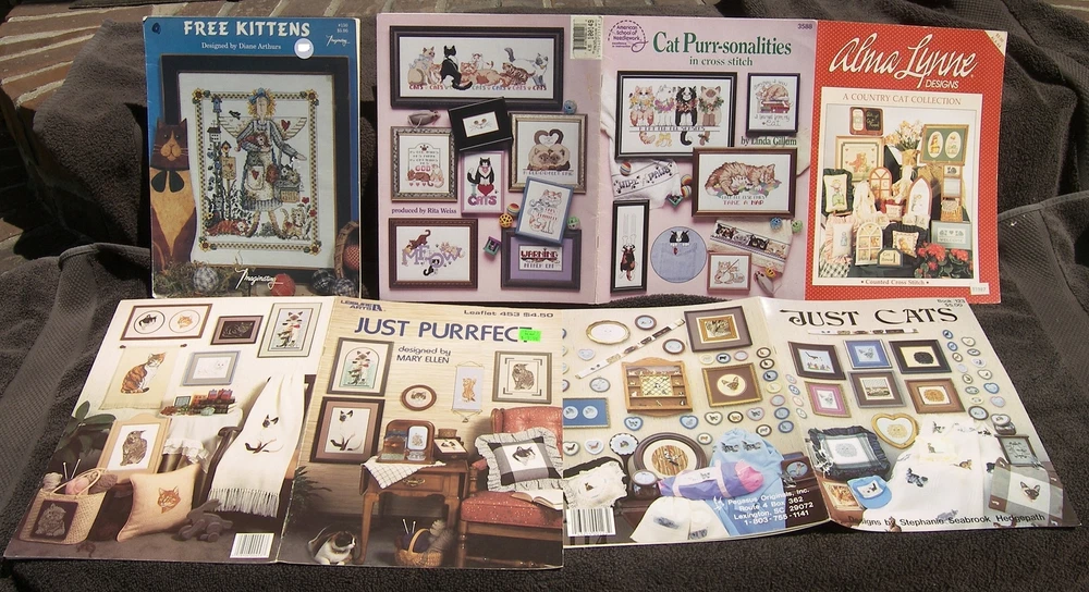5 Cross Stitch Just Purrfect CATS Cat Country Siamese Persian Mau Maine Coon Rex 5 Cross Stitch Just Purrfect CATS Cat Country Siamese Persian Mau Maine Coon Rex EBay has limited the number of "identical" books that will appear in their "Best Match" search for any one seller. In order to see all of the BOOKS I have up for bids, please select ANY search sorting OTHER THAN "Best Match". Cross stitch patterns featuring CATS! A Country Cat Collection in cross stitch Alma Lynne paperback, 33 pages (1987) Includes instructions and templates for making Cat & Bunny muslin dolls. Designs include: “C” is for Cat; Wedding announcement w/ bride & groom cats; WELCOME w/ cat silhouette; boy and girl with their pet cat; I Love My Cat; cat ballerina; cat in pajamas; cat fishing; cat as a street walker (cat house); and more. Just Cats in cross stitch Stephanie Seabrook paperback, 18 pages (1985) A BUNCH of cats: Manx, Siamese, Persian, Somali, Japanese bobtail, Himalayan eyes, Egyptian Mau eyes, Siamese eyes, white chinchilla Persian eyes, black Persian copper eyes, Korat, Abyssinian; Rex, calico, Burmese, Maine Coon. Some pencil notes Just Purrfect in cross stitch Leisure Arts 453 paperback, 14 pages Includes: brown tabby; cat looking into aquarium; white on white tabby; tabby head; Siamese full body (sorta) and head; Persian kitten body & head; black & white head, cat climbing; calico full body. Cat Purr-sonalities in cross stitch ASN paperback, 17 pages (one page is loose) Row of A Cat for All Season w/ flower neckwear; cat sleeps on books; Hang in There (cat); cat in jeans pocket; cat fishing in goldfish bowl; When all else fails take a nap; I heart Cats; MEOW w/ cats; Warning Attack cat and more. Free Kittens in cross stitch Imaginating leaflet (1997) One design as shown: Garden Angel with cats on the ground & and kittens in a basket. Approx. size: 7-3/4 x 10-1/4 inches on 14 count I do NOT use "Stock Photos". Every ite m I sell has an individual scanned picture so you can see what you are REALLY getting. This is a previously owned lot in good condition; with worn edges, has clean & complete texts & good binding. I have other COOKBOOKS up for bids as well as other books and will happily combine shipping to reduce postage costs for the bidder. I combine shipping. Check out my auctions, maybe you'll find something you didn't know you needed. ********************************************************************************* Shipping charges: If the item is not as advertised, I will pay return shipping. Item condition: Upon receipt by the seller, item must be in the same condition as shown in its pictures. Buyer can re-use the packing materials & the original mailing box. Restocking fee: There is a $1 restocking fee unless the item was wrongly described. Refund: Money will be refunded upon receipt of item. Listing and template services provided by inkFrog