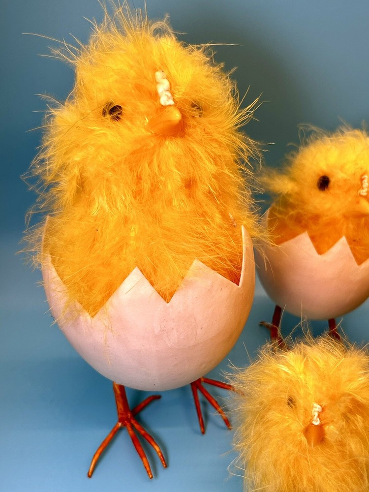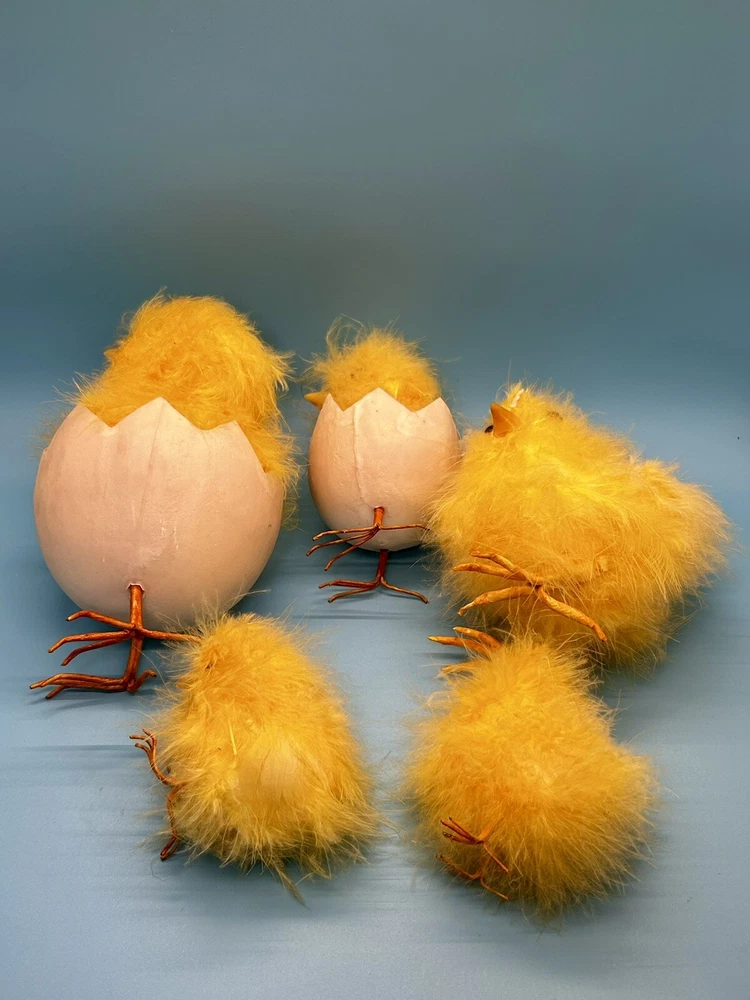 Tallest chick measures roughly 7” tall. This is a preowned set which may have various cosmetic blemishes, including signs of wear, dust, markings, and other imperfections due to its previous use, age, movement, and storage. It should also be noted that color may vary from photos due to camera flash and/or computer monitor color variations. If condition concerns you, please review the images closely before purchasing, zooming in as necessary, as they should be considered part of the description. Questions are always welcomed! 9/38/8/24