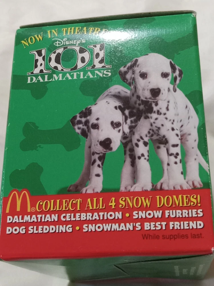 Step into the magical world of Disney's 101 Dalmatians with this complete set of 5 snow dome figurines, a memorable collectible from McDonald's 1996 Happy Meal series. Each intricately designed piece captures the playful spirit of the beloved character family, beautifully preserved within the clarity of snow globes that are sure to charm collectors and youngsters alike. The set is ideal for fans of all ages, from the youthful exuberance of 3-4 year olds to the nostalgic appreciation of 8-11 year olds and beyond. .