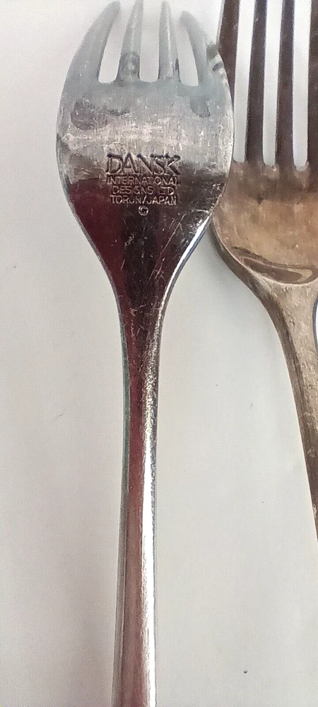 Material: Stainless Steel UPC: NA Handle Material: Stainless Steel gtin13: NA Item Length: 7 in Type: Dinner Fork Handle Pattern: Solid Set Includes: Salad Fork, Dessert Fork Brand: Dansk Color: Silver Country/Region of Manufacture: Japan