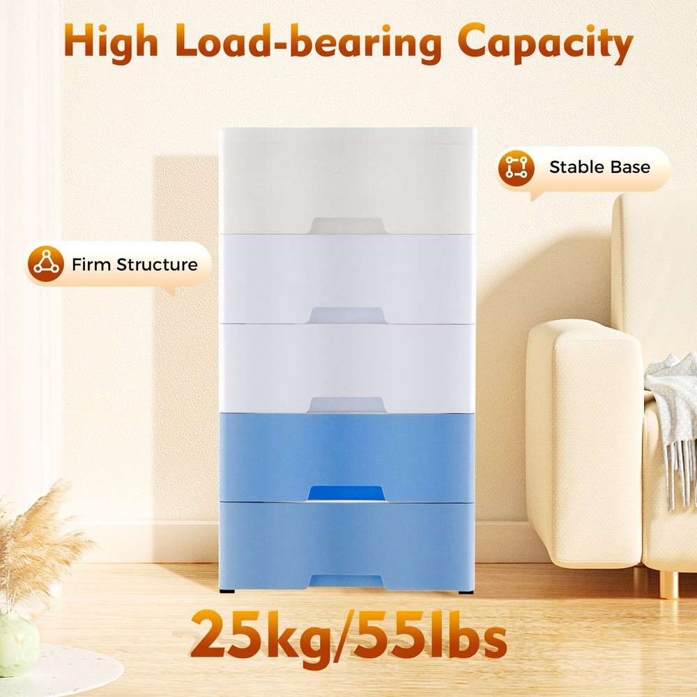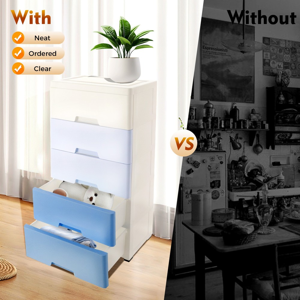 5 Drawers Dresser Clothes Storage Cabinet Bedroom Plastic Chest Closet Organizer