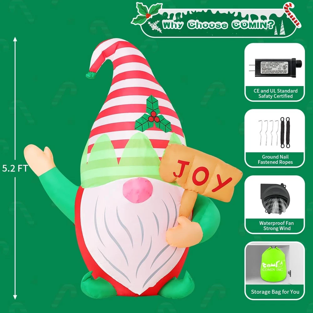 Store New Arrivals Add to Favorite View Feedback Contact 5 FT Christmas Inflatables Gnome Outdoor Decoration Blow up Yard with Built-In Leds for Holiday Garden Party Decor Description Item model number CO-27670 Item dimensions L x W x H 6 x 6 x 60 inches Color green Item Weight 2.53 pounds Occasion Christmas Product Dimensions 6 x 6 x 60 inches Magical Christmas Outdoor Decorations: 5FT COMIN christmas inflatables gnome. This Christmas inflatable outdoor decoration has built-in bright LEDs cast a cozy, evenly diffused glow that pops at night—perfect for yard, lawn, porch, garden, or walkway. Inflatable gnome will create a sweet, photo-worthy holiday scene the moment you plug it in. Plug In, Self-Inflates in Minutes: Christmas inflatables gnomes are supported by CE & UL certified adapter and the powerful built-in fan does the rest and supports fuller shape and reliable nightly performance. The bottom zipper helps you release air fast for takedown. This christmas outdoor inflatable is ideal for busy families who want fuss-free décor. Waterproof & Winter-Ready: Our gnome inflatable christmas has reinforced fabric Built to Last Crafted from upgraded, waterproof polyester with solid stitch seams. The christmas inflatable gnome is engineered to operate in rain or light snow. Tear-resistant construction helps defend against rips in changing winter weather for whole holiday Complete Outdoor Kit Included: Everything you need arrives in the box: ground stakes, fastening ropes, and a storage bag. Multiple anchor points keep your christmas blow up yard decorations steady and upright, while the compact carry bag makes off-season storage neat and simple—no extra purchases required. Worry-Free Holiday with COMIN Customer Service: Questions, missing parts, or setup help? Our responsive support team is ready with quick solutions and step-by-step guidance so your display shines all season. Enjoy a pleasant experience from unboxing to nightly glow. Product description COMIN 5 FT Christmas Inflatables Joy Gnomes Outdoor Decorations 1 Decor Anywhere 2 Wonderful Gift Box 3 Easy to set up 4 Perfect Package 5 Bright in night ! ABOUT US We offer the best prices around on high quality products. Our E-store includes media such as books, movies, music and games while offering electronics, toys, sporting apparel, clothing, tools, general home, garden items and more. SHIPPING We are always working hard to ensure your package arrives as soon as possible. Please understand that some factors like weather, high postal traffic, and the performance of shipping companies are outside of our control. We offer free shipping to the lower 48 states and ship within 2 business days of payment, usually sooner. We do not accept P.O. Boxes. Please provide a physical address. For shipping outside of the continental USA, we only use eBay's Global Shipping Program.The item is shipped to KY and then sent to the rest of the world. International customers are responsible for all duties and taxes. Continue to check out in order to calculate costs for shipping the item to your country. Messages regarding eBay's Global Shipping Program MUST be directed at eBay EXCLUSIVELY. RETURNS We offer a 30-Day Return Policy on items which you are not completely satisfied with. You have the option for a full-refund or an exchange of the item. No returns are available on items shipped outside of the USA. PAYMENT We accept PayPal. CONTACT US This page content is yet to come Please ad us to your favorite seller and visit again later Thank You CUSTOMER SATISFACTION We try our very best to make sure every customer is completely satisfied. If there's a problem, message us! We're happy to help. WE ACCEPT Copyright © 2021 AutoDS. | All Rights Reserved